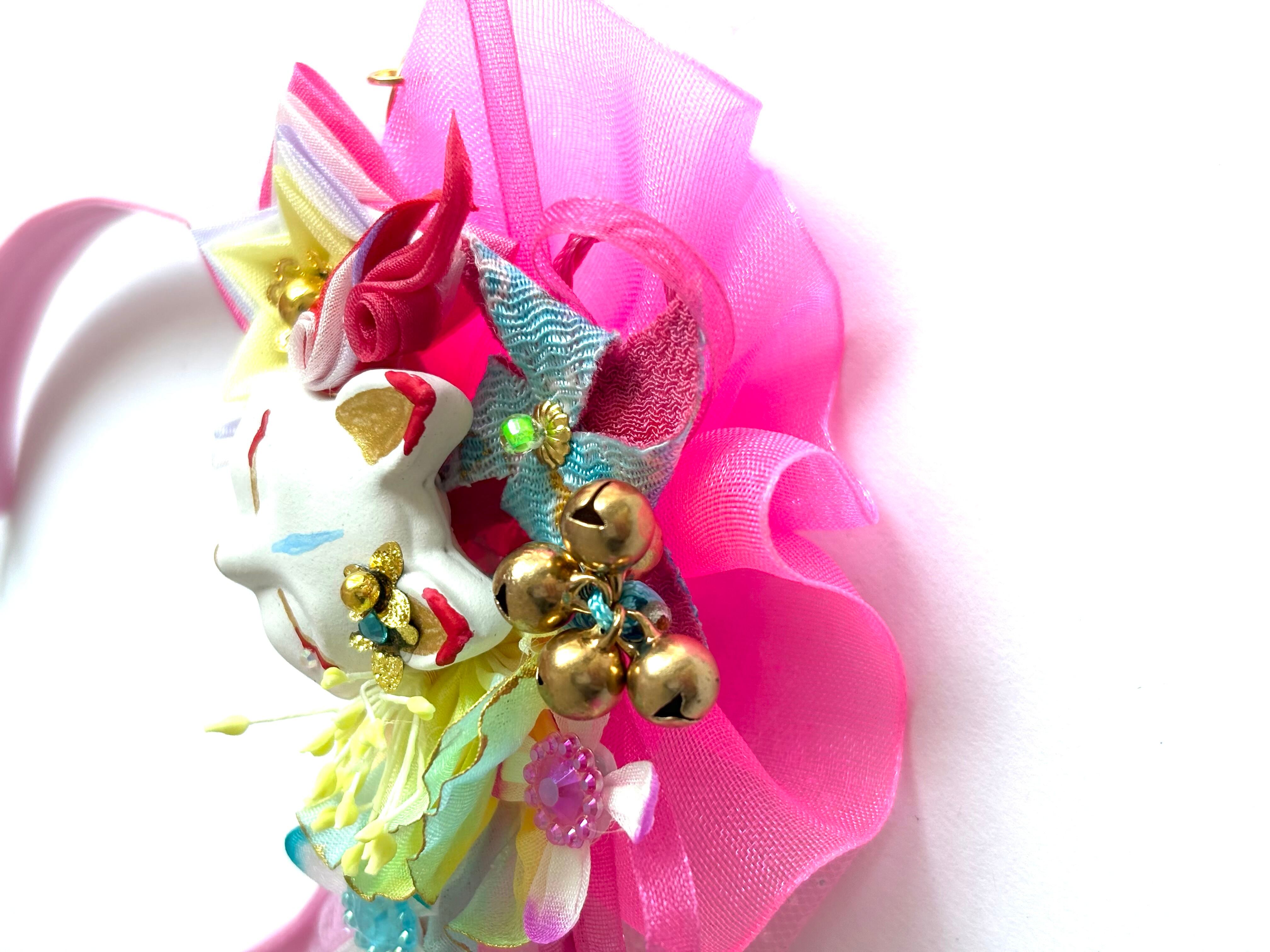 夏祭りの宵宮がテーマの狐面モチーフがポイントのお飾りです