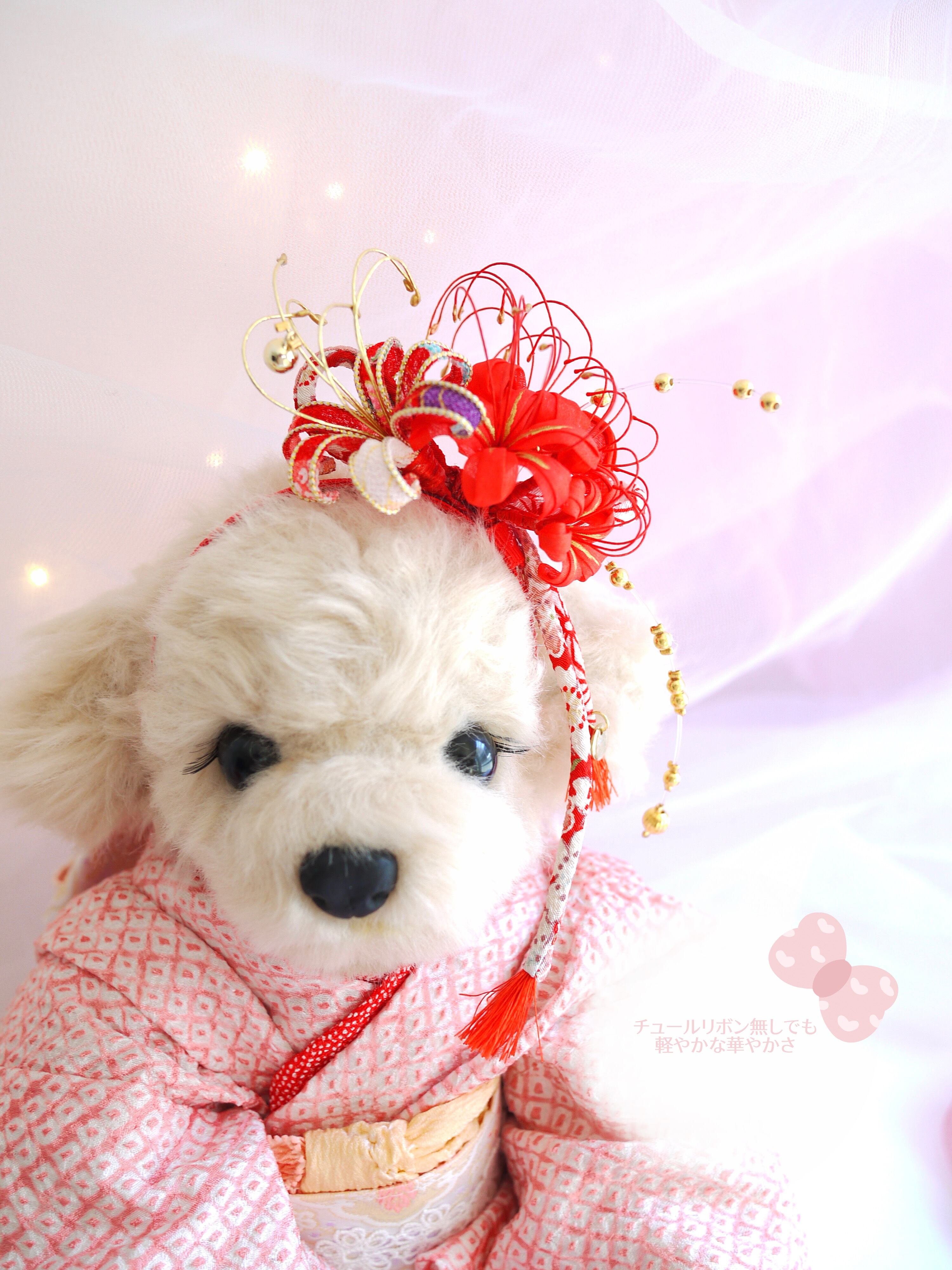 つまみ細工は専用の糊のみで制作しております、水に濡れると糊が溶けて型崩れしたり、正絹地が変形・変色する原因になることがございます。 雨や水濡れ・湿気には十分お気をつけください。 濃色のものは特に色移りする場合がございます