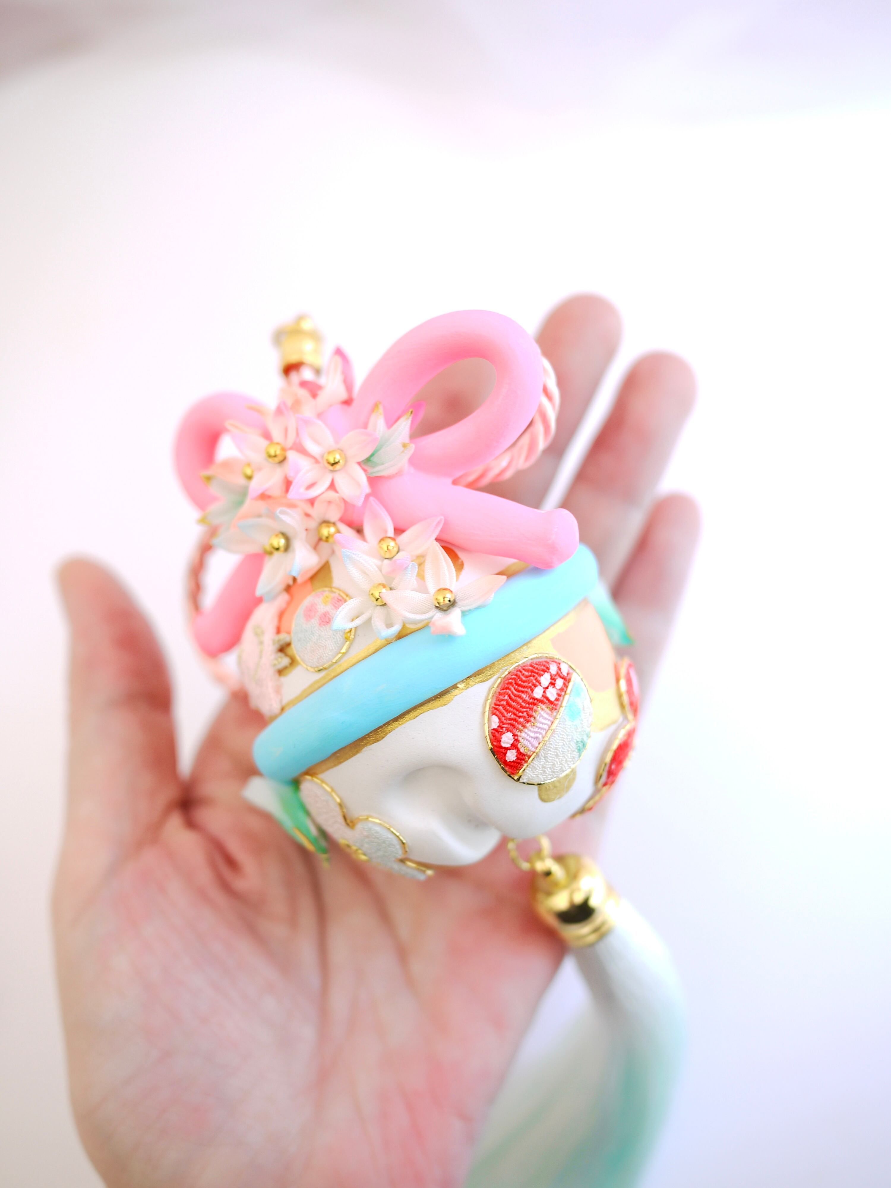鈴の直径は約5.5cm重さは房飾り込みで27gほど張り子作りなので見かけよりは軽いですが