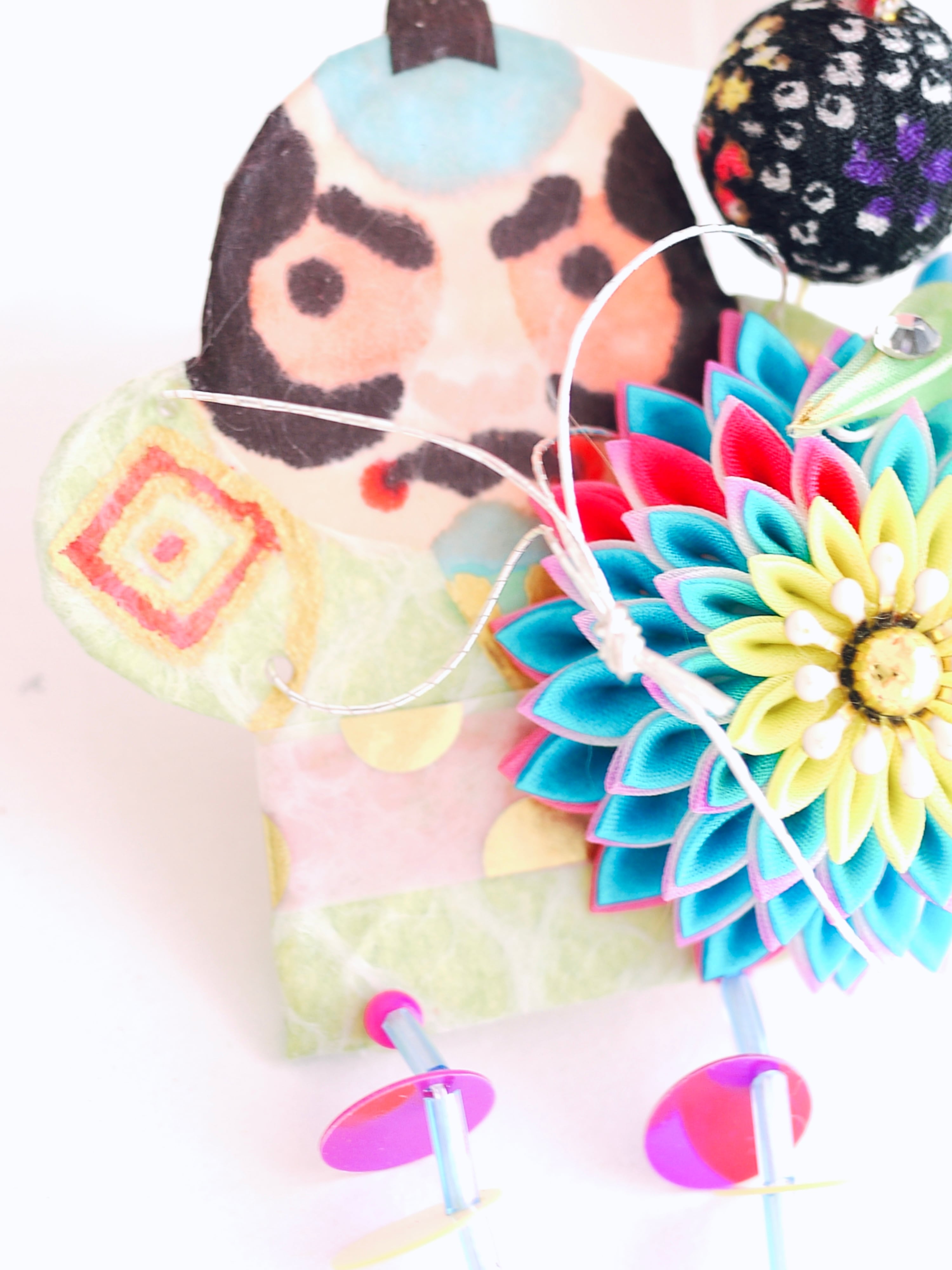 お着物じゃなくてもあったかニットで初詣の時にもちょこんとつけて記念撮影も合いそうな、和紙で貼り込んだ奴さんが素朴な可愛らしさです(でも本気の奴凧の骨組み作りなのが密かな自慢!)