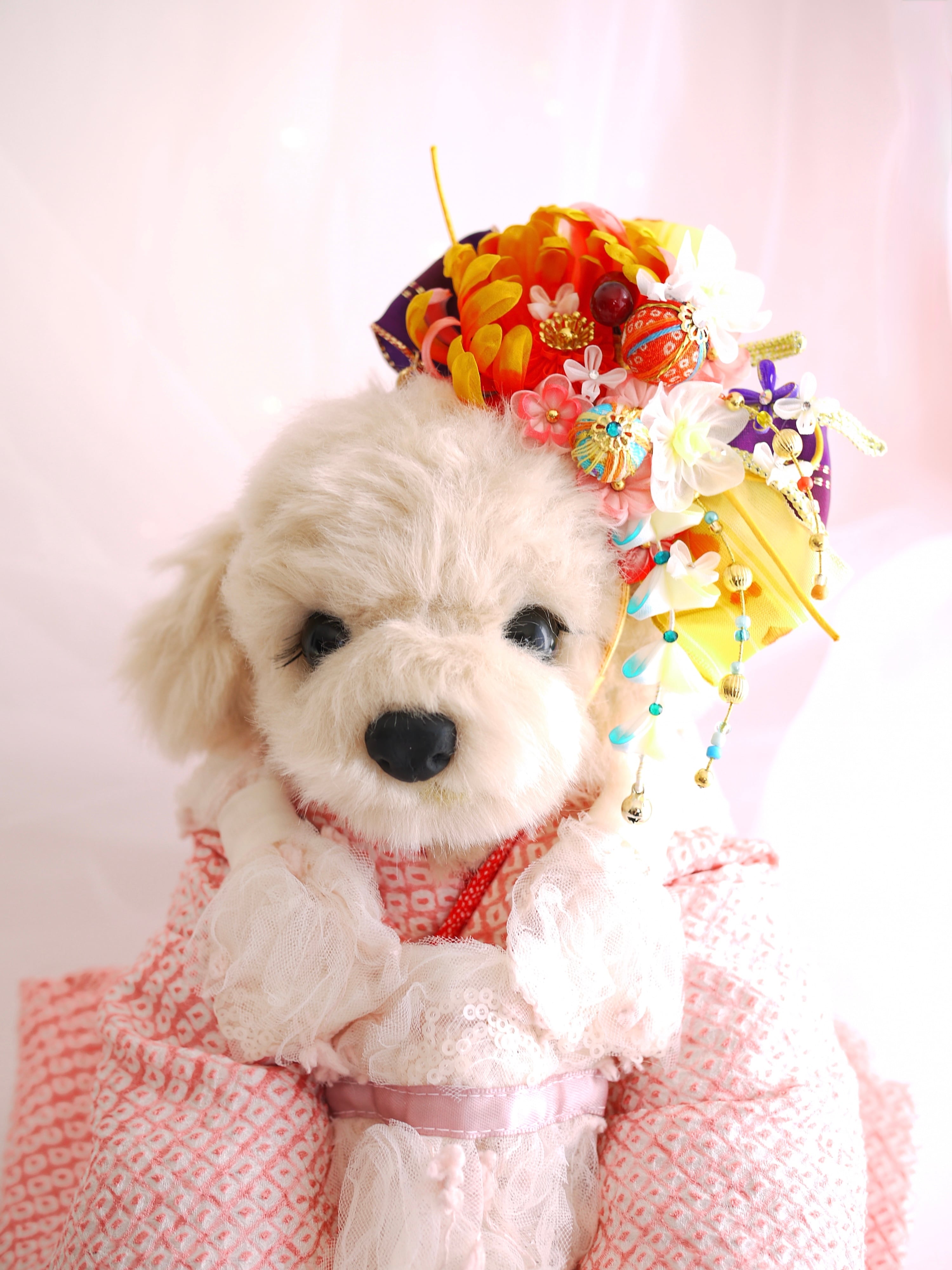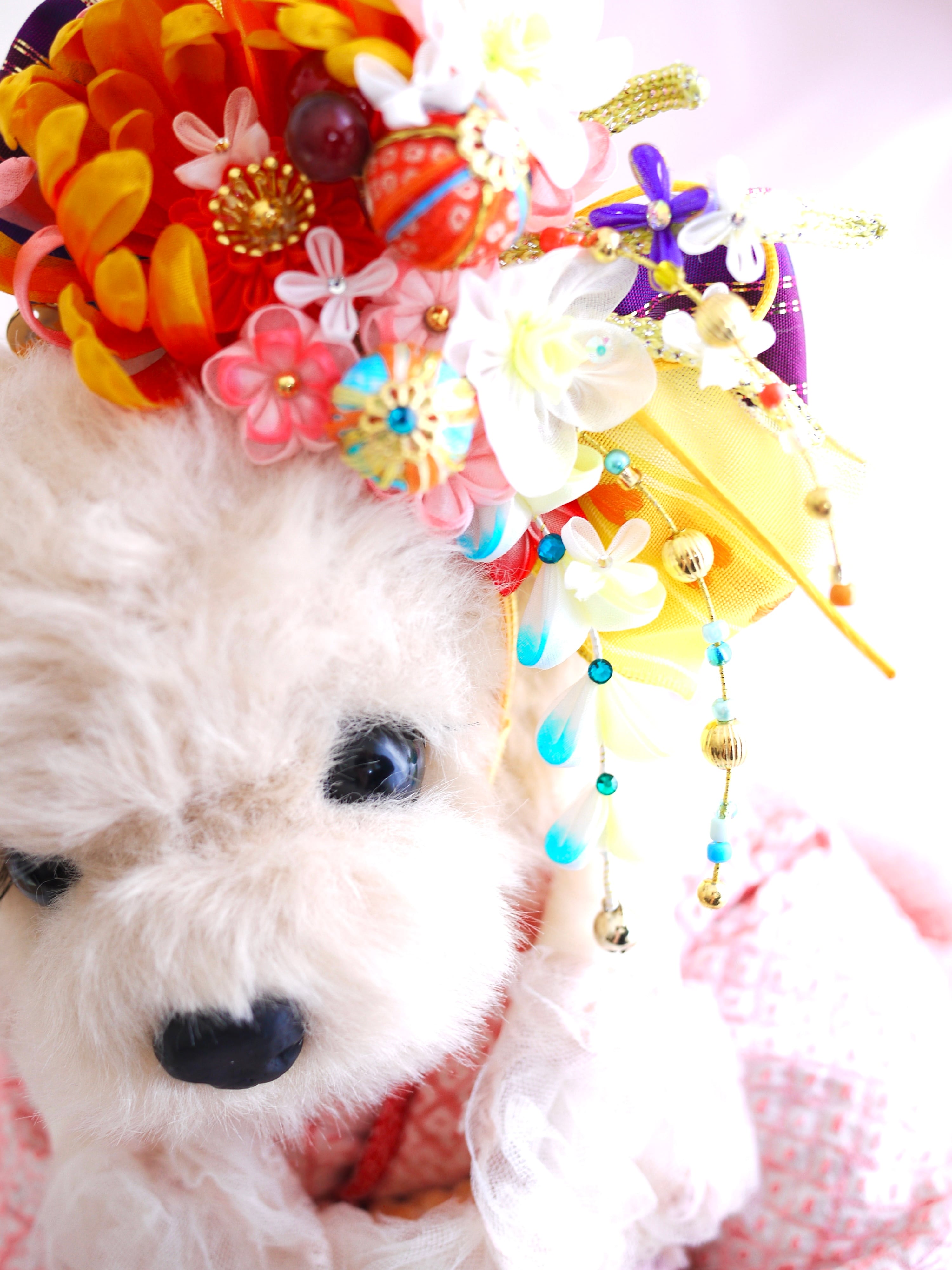 小さいこちゃんはお花がバーンと立ち上がってるデザインだから大きな立ち耳さんだとバランス取りやすいかも