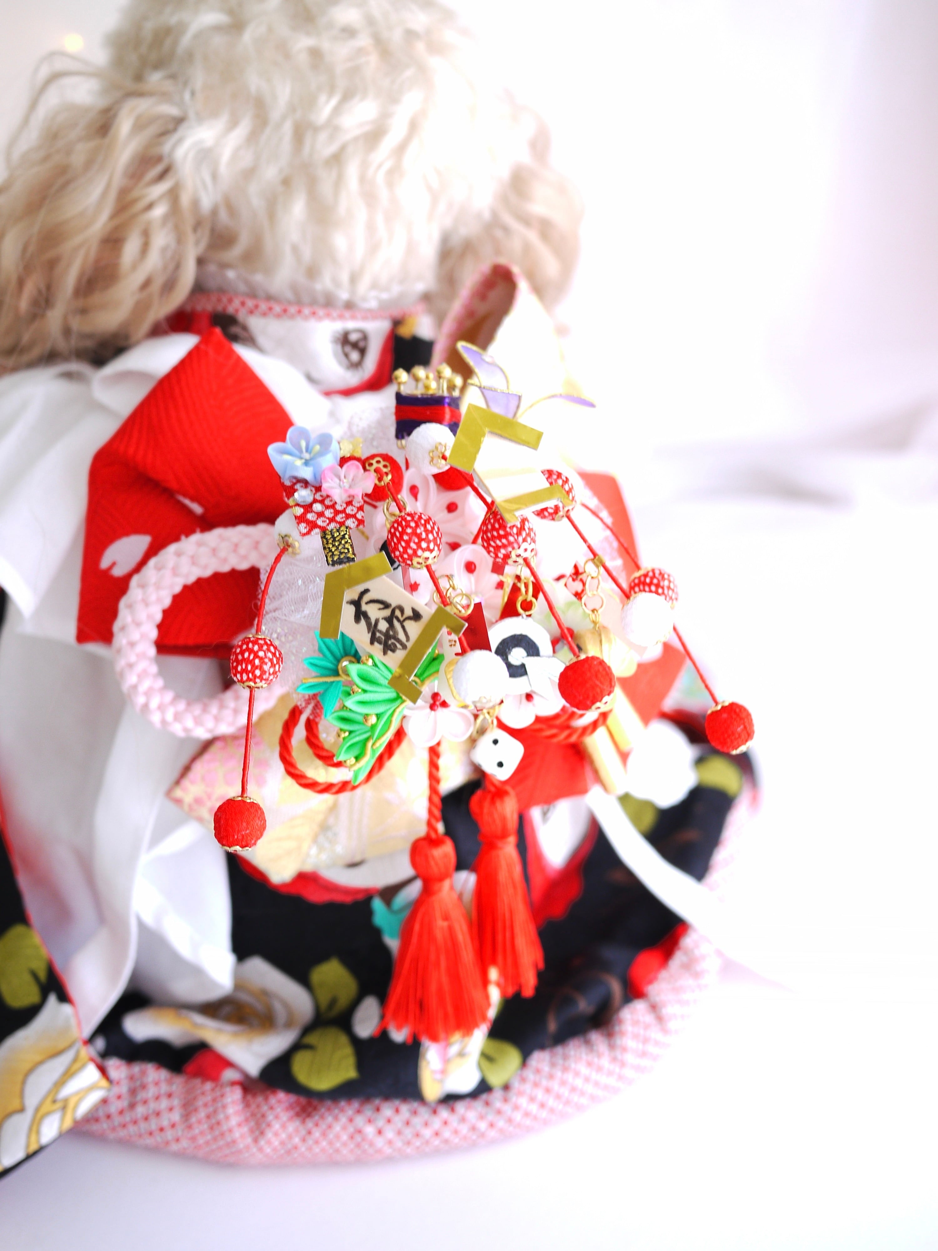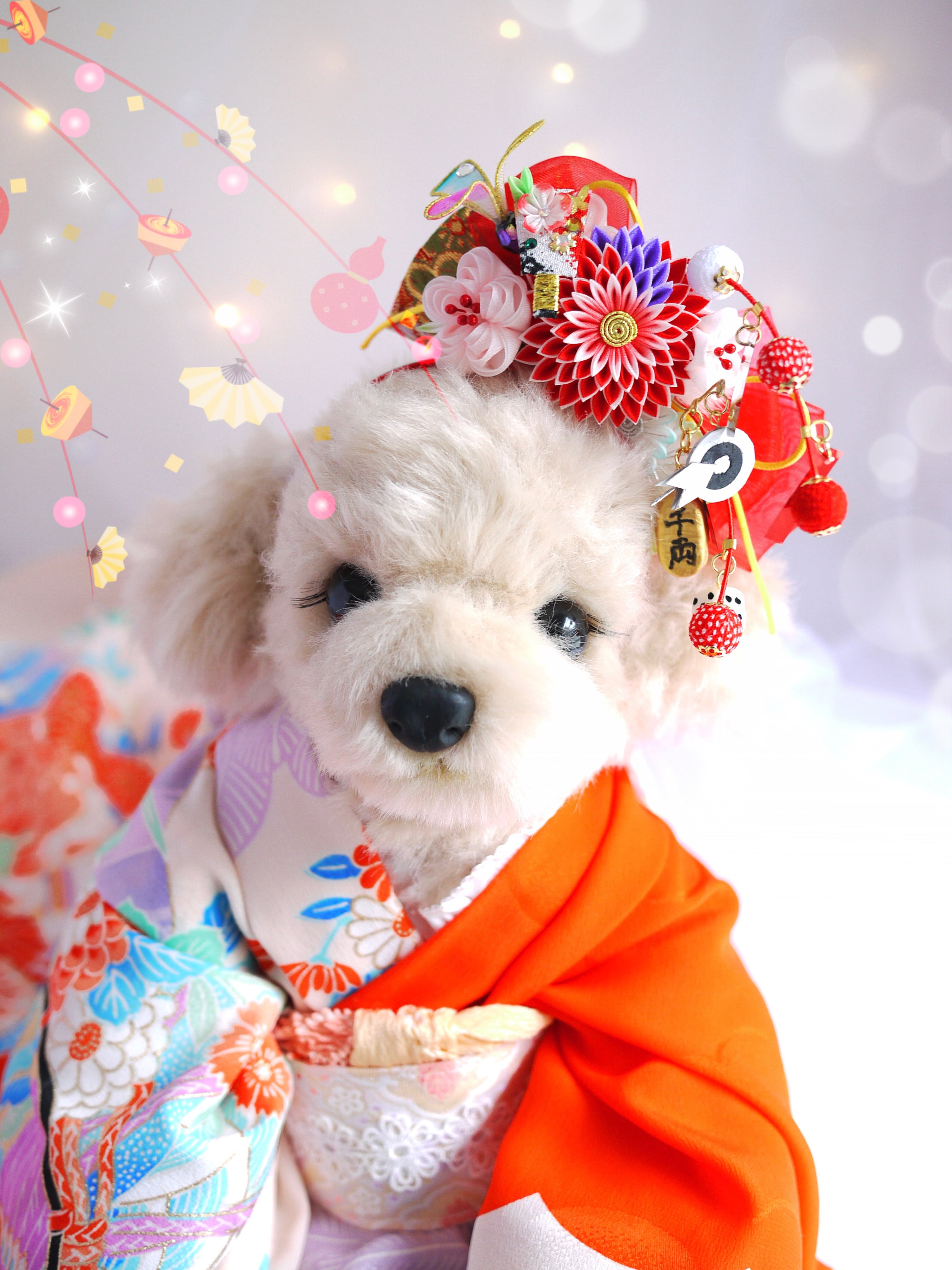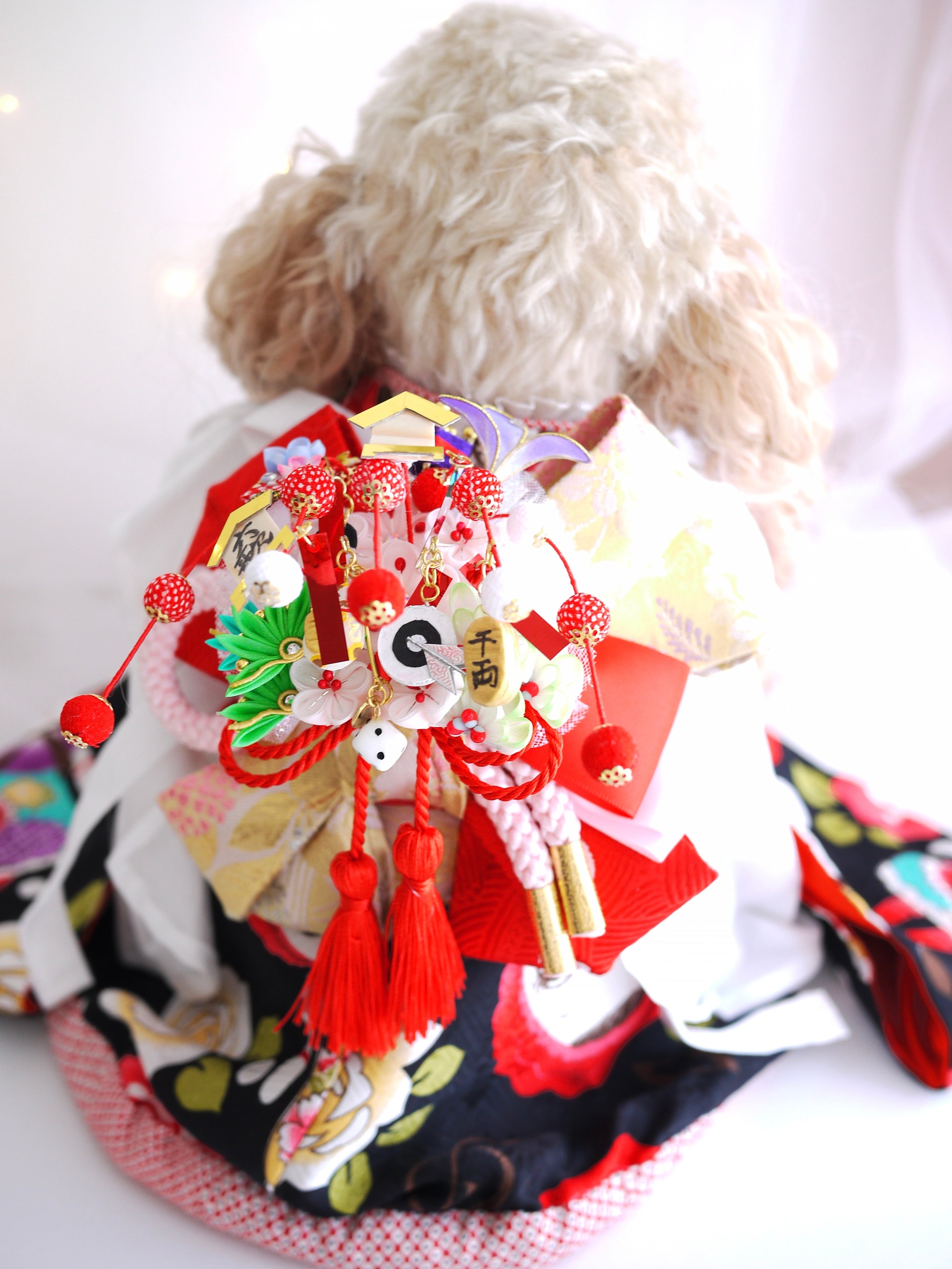もちろん小さなワンちゃんのお飾りに使える市販の軽量パーツは無いので全てオリジナルで作りました、六歌でしか買えない(たぶん)本格舞妓かんざしで年末年始の可愛いご挨拶フォト撮影を盛り上げてくださいね