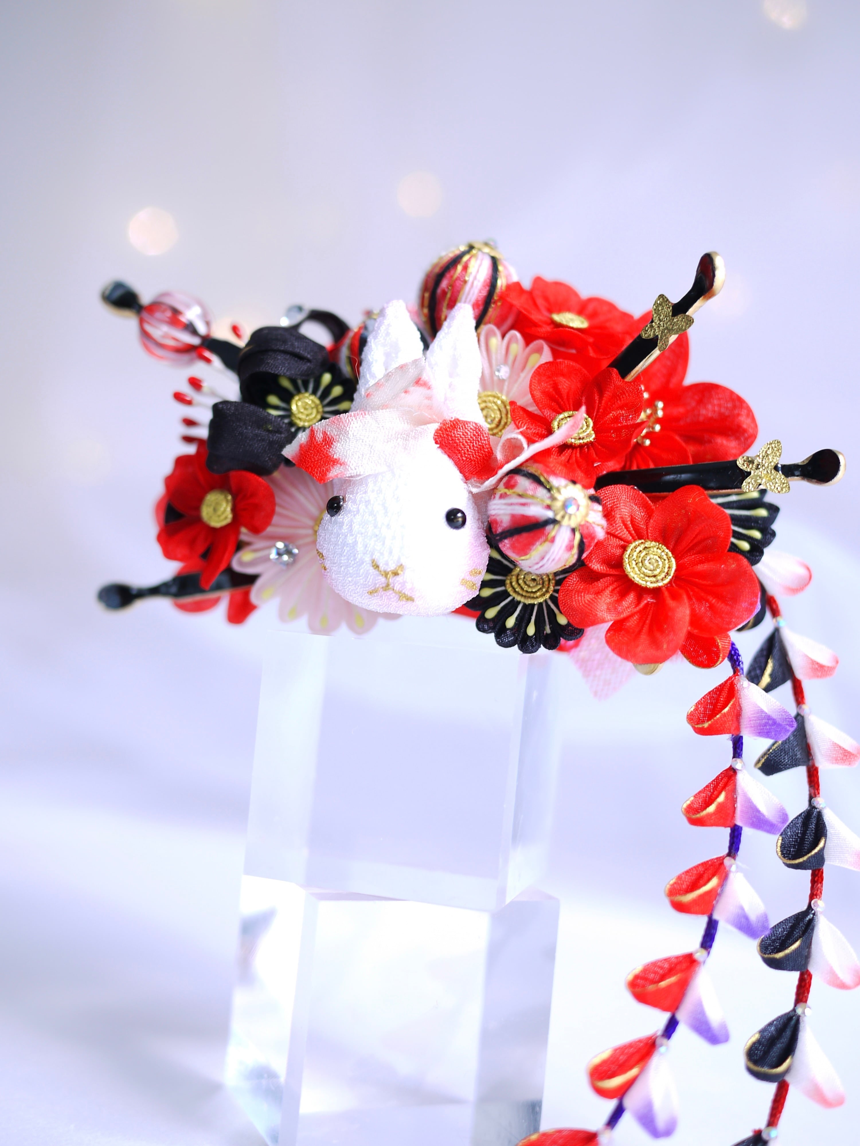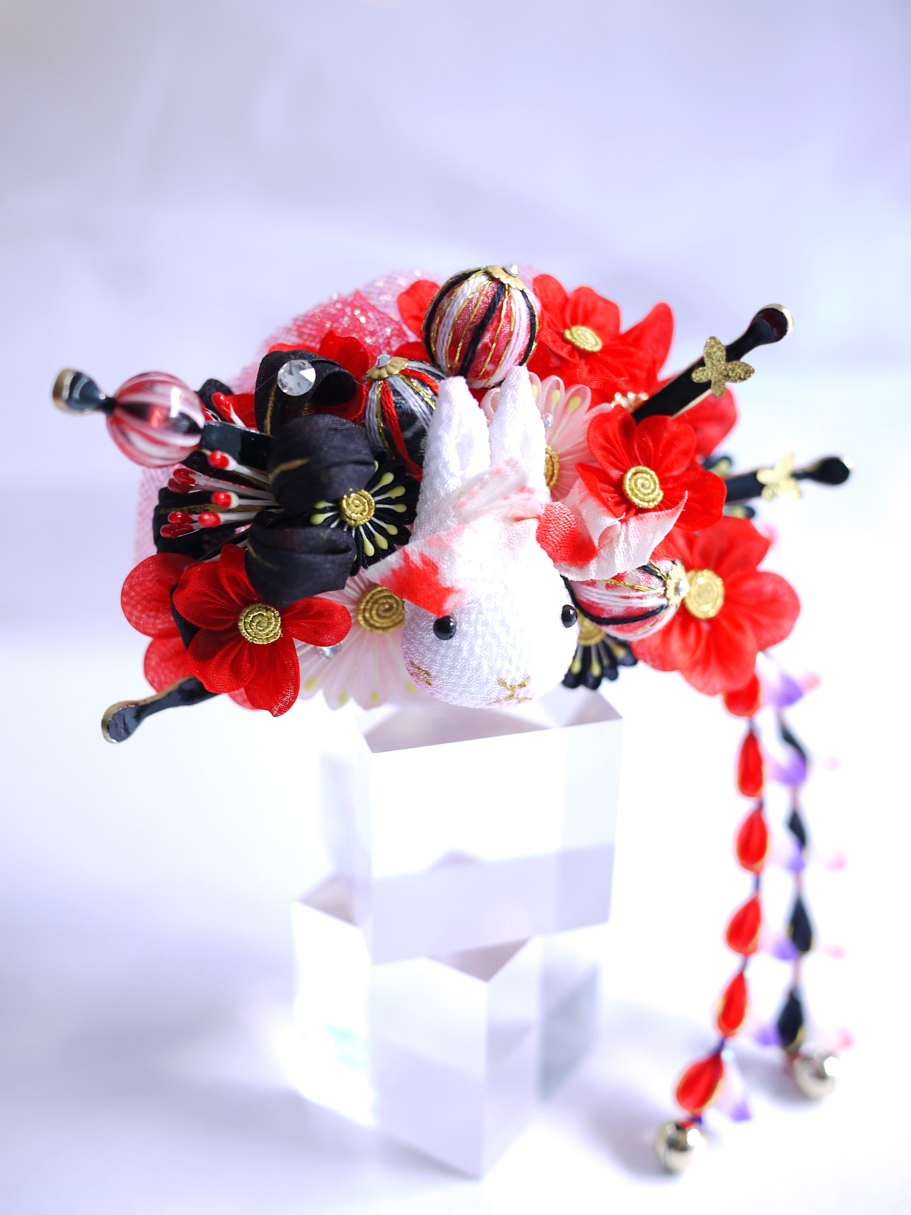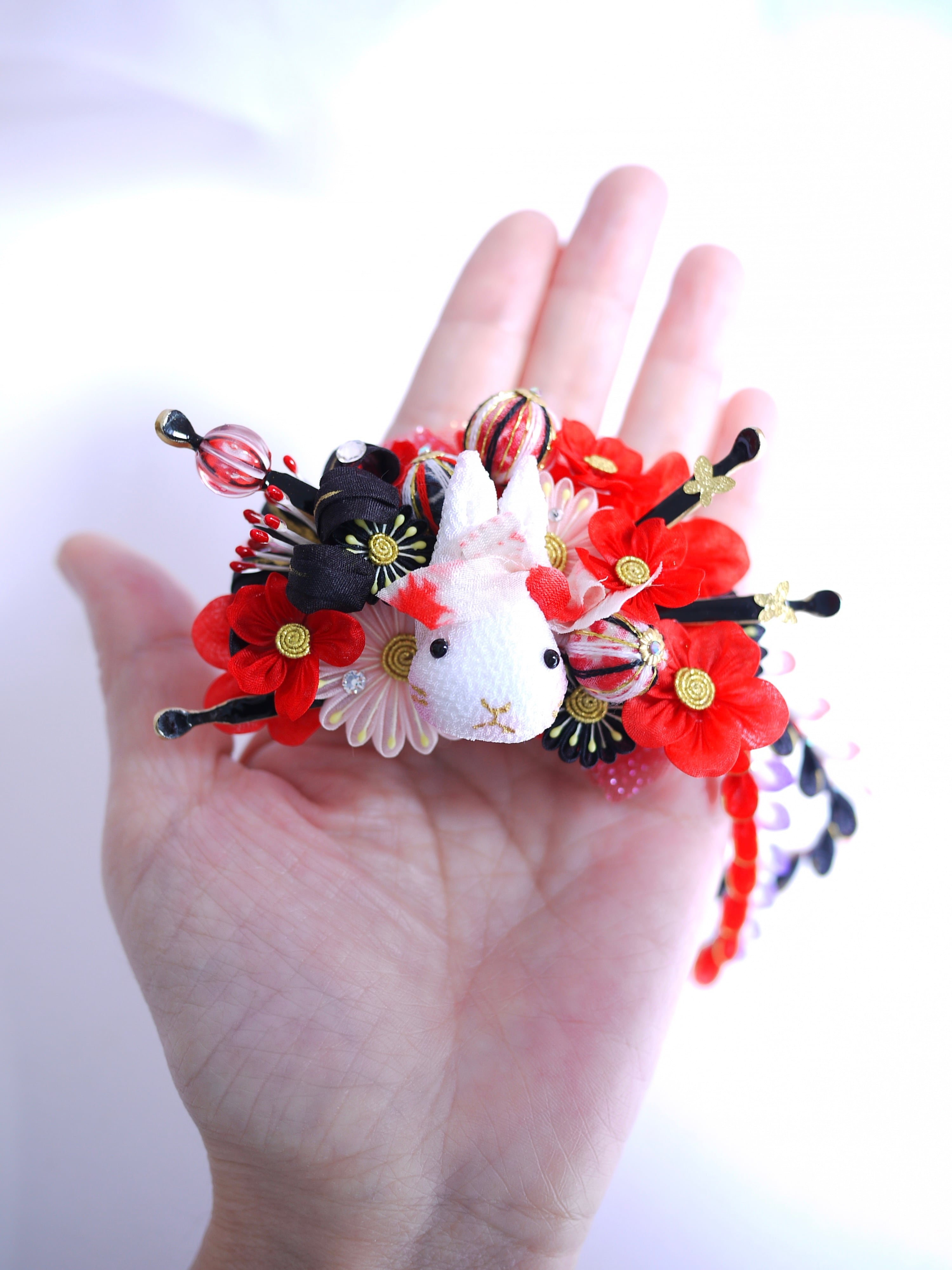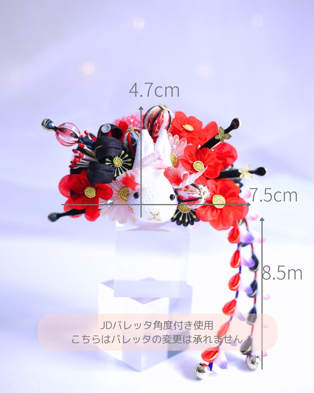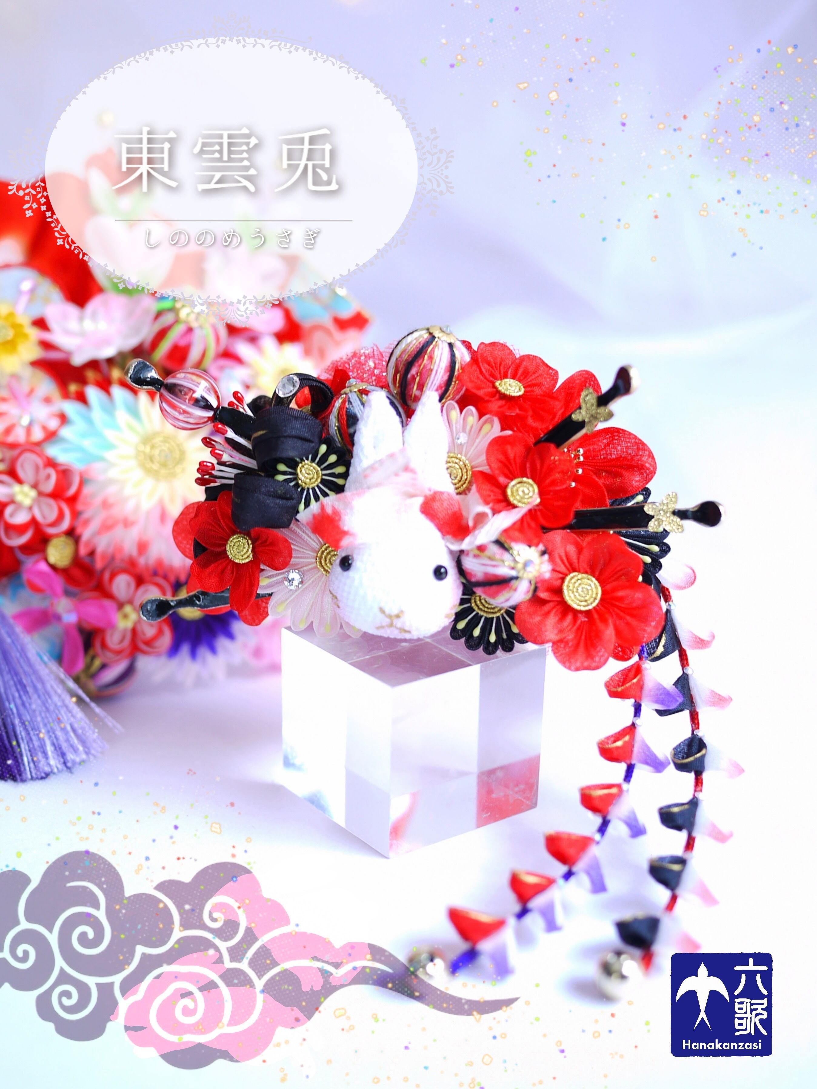 東雲兎カチューシャ同様ボリュームは控えめにしていますので小顔ちゃんで花魁風簪を探している方にも使いやすいサイズ感かと