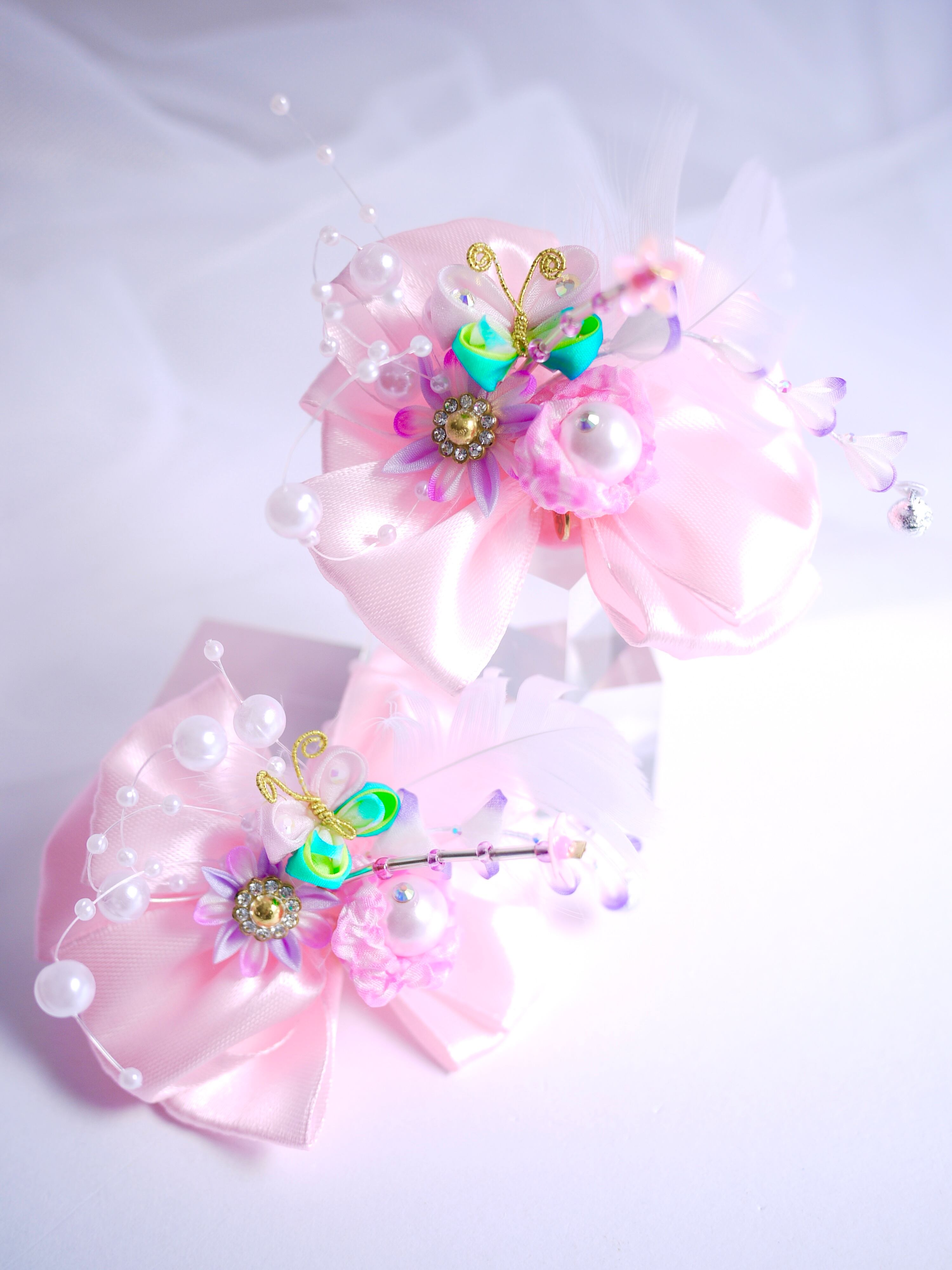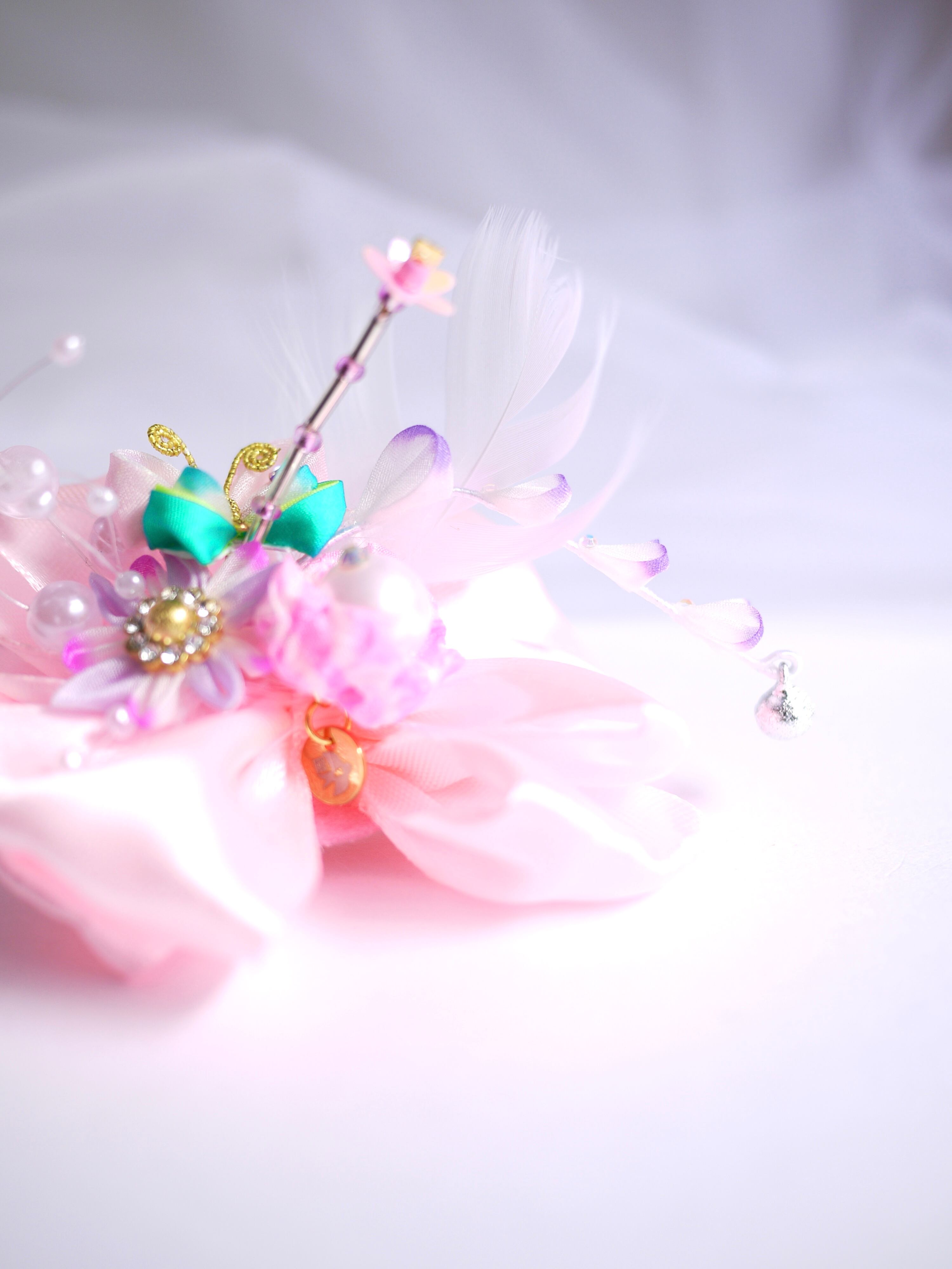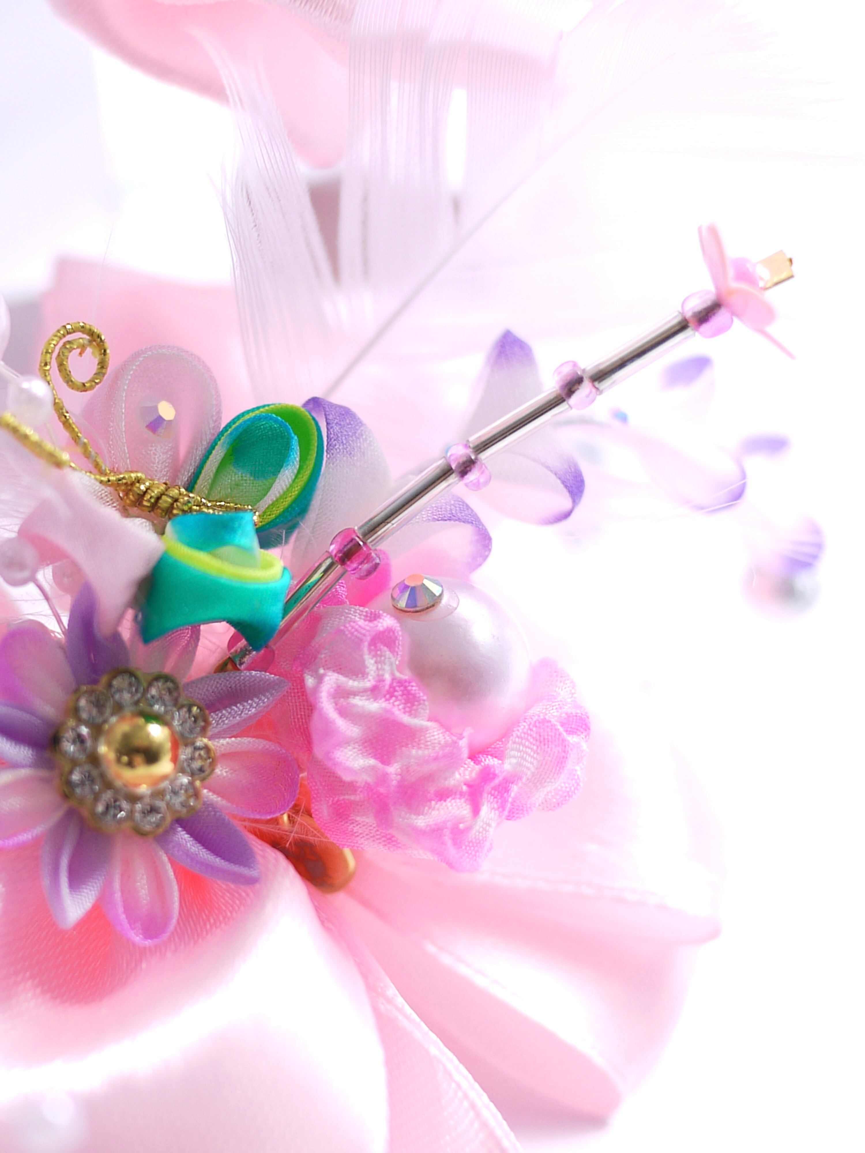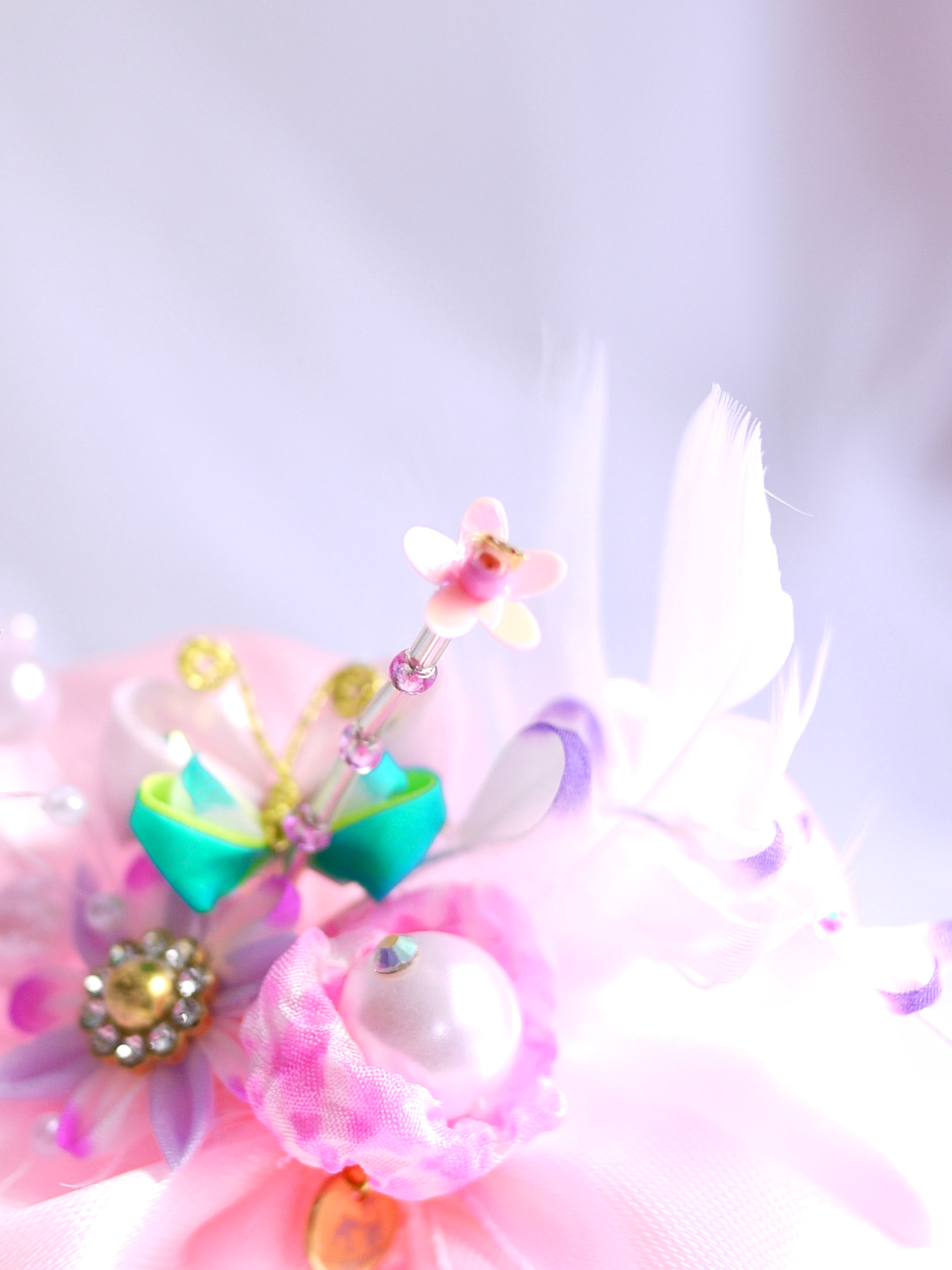 ほのかにチープなパールのパーツとかピョンピョンした羽とかテカテカサテンのピンクリボンとか、伝わる?伝わる?伝われ!