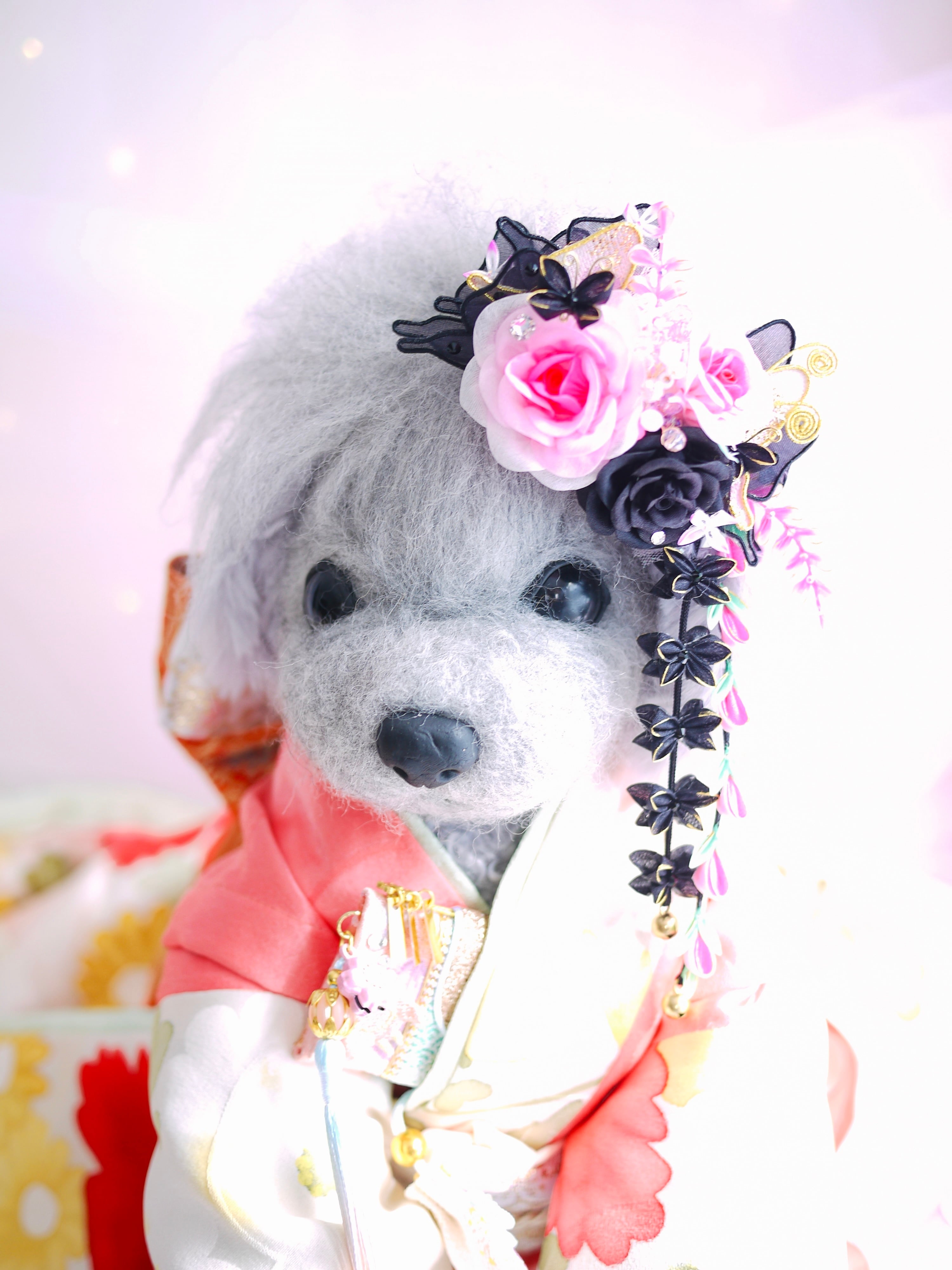 つまみ細工は専用の糊のみで制作しております、水に濡れると糊が溶けて型崩れしたり、正絹地が変形・変色する原因になることがございます。 雨や水濡れ・湿気には十分お気をつけください。 濃色のものは特に色移りする場合がございます