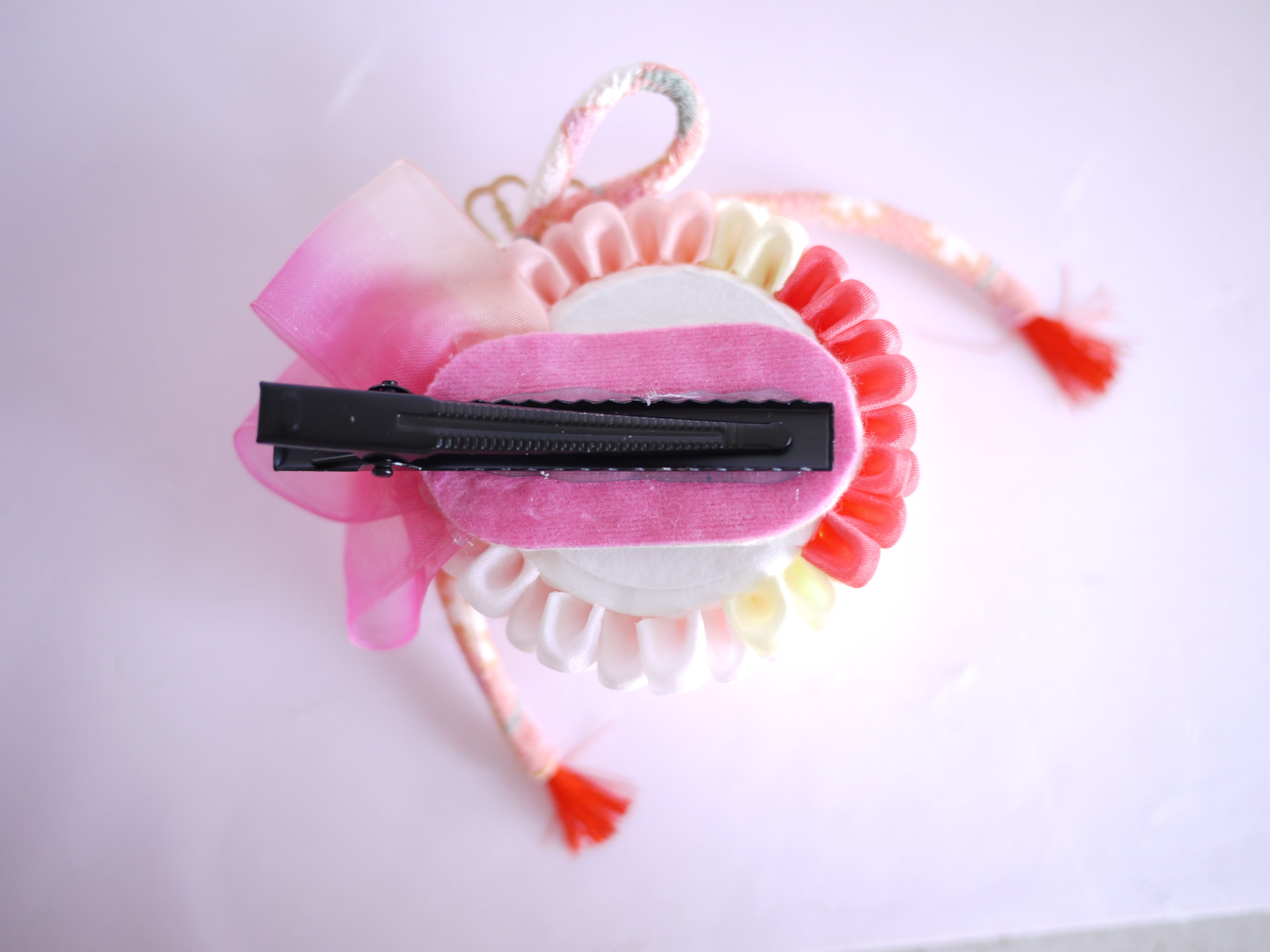 ワンニャン用バレッタタイプの花かんざし&帯飾りのセット