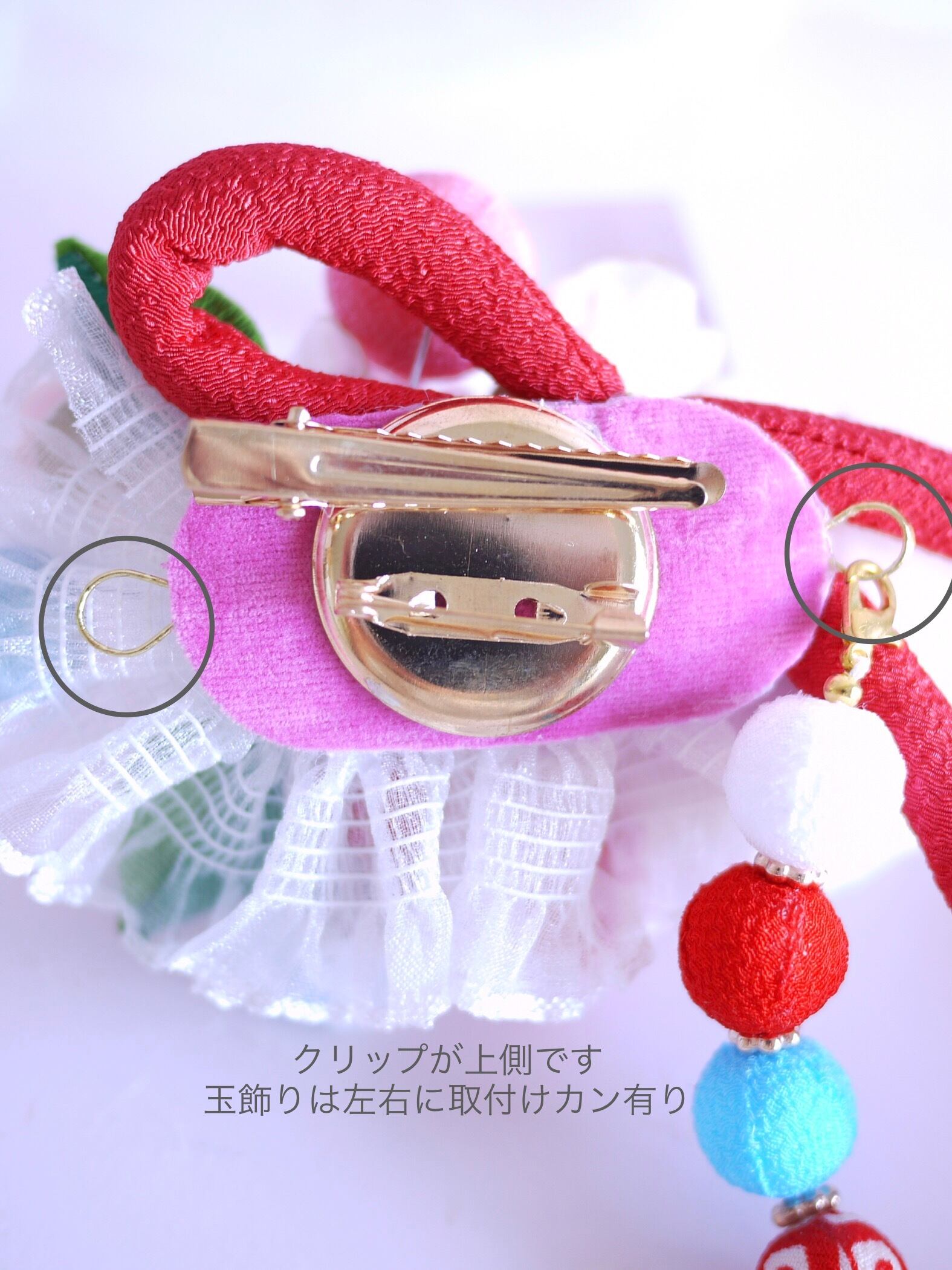 つまみ細工は専用の糊のみで制作しております、水に濡れると糊が溶けて型崩れしたり、正絹地が変形・変色する原因になることがございます。 雨や水濡れ・湿気には十分お気をつけください。 濃色のものは特に色移りする場合がございます