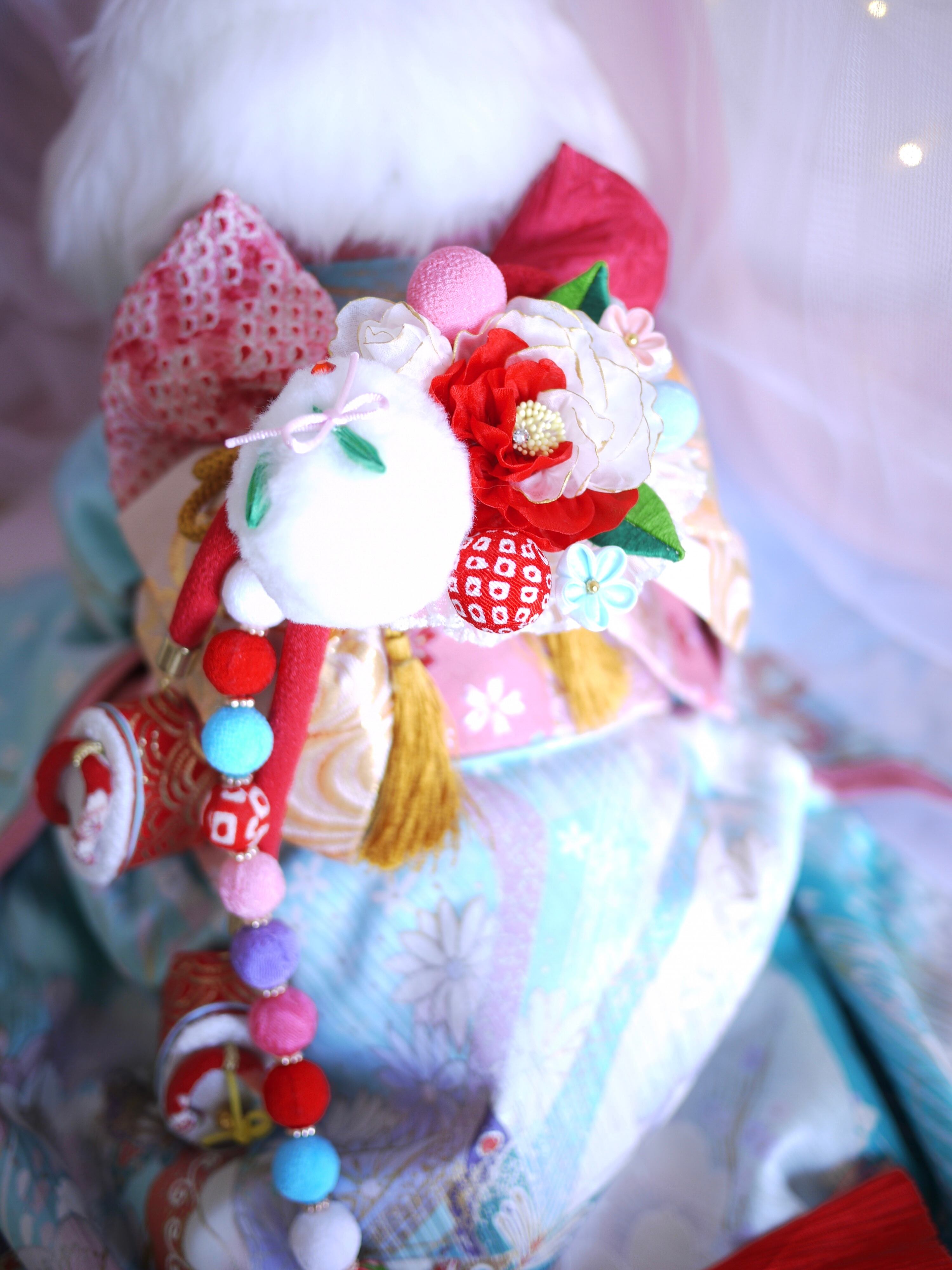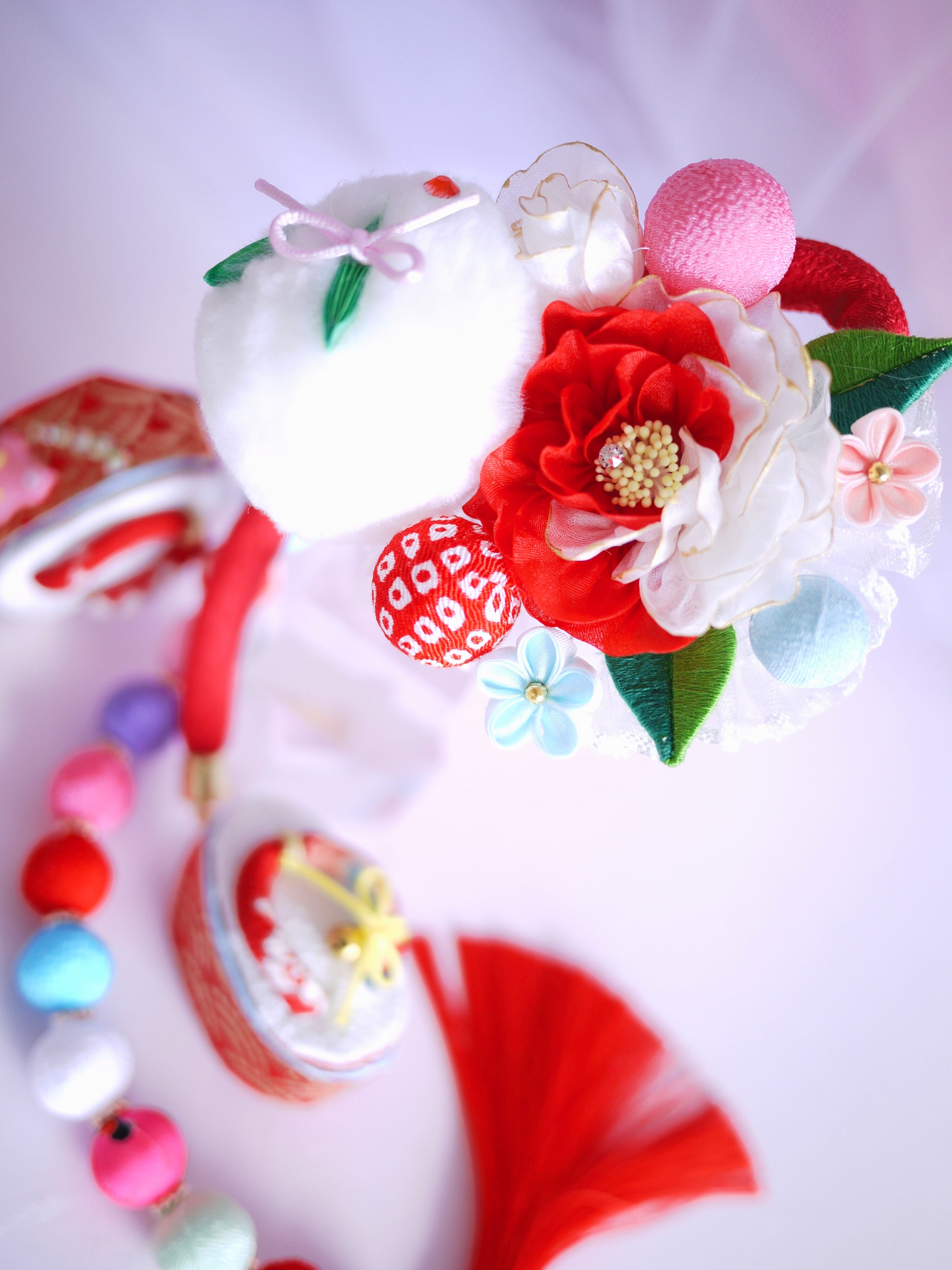 雪兎&紅白椿モチーフ、おめでたい配色で七五三にもお正月にも可愛らしくお使い頂けます