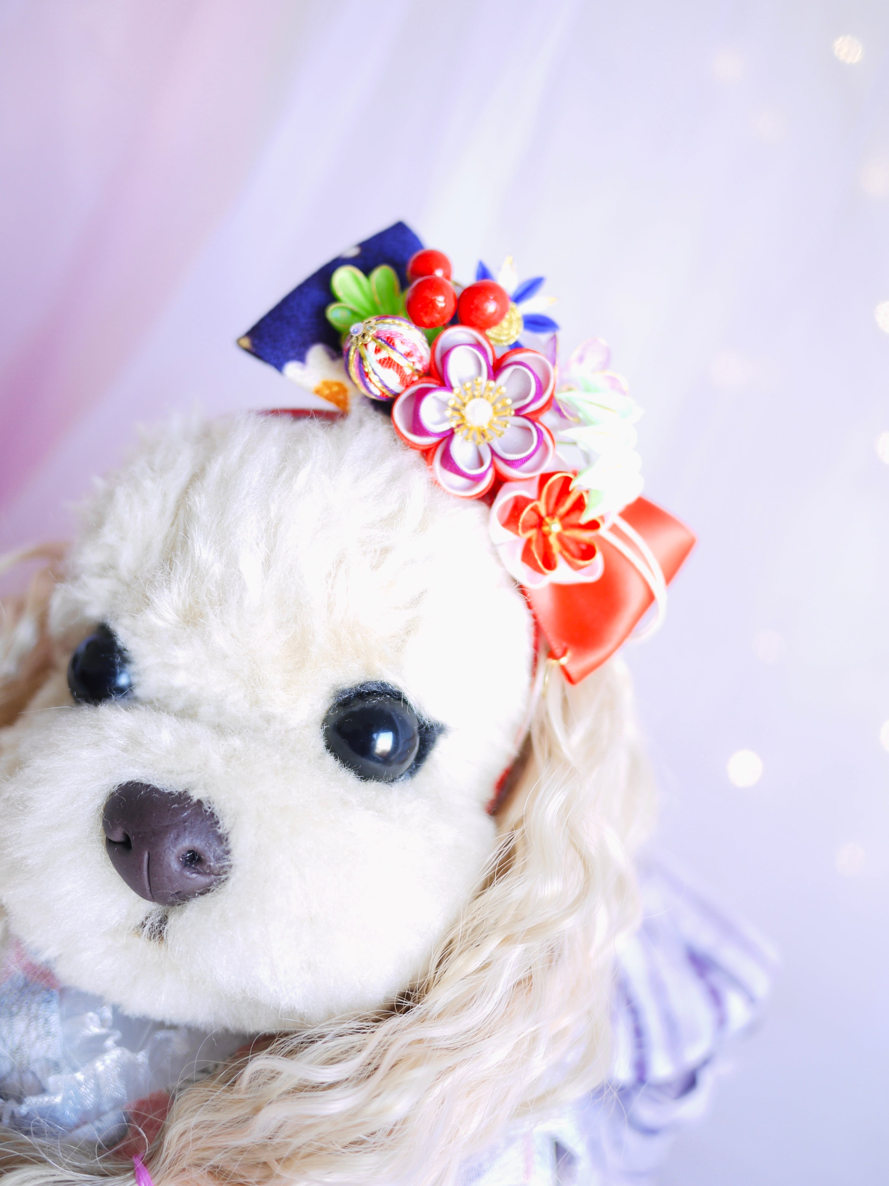 つまみ細工は専用の糊のみで制作しております、水に濡れると糊が溶けて型崩れしたり、正絹地が変形・変色する原因になることがございます。 雨や水濡れ・湿気には十分お気をつけください。 濃色のものは特に色移りする場合がございます