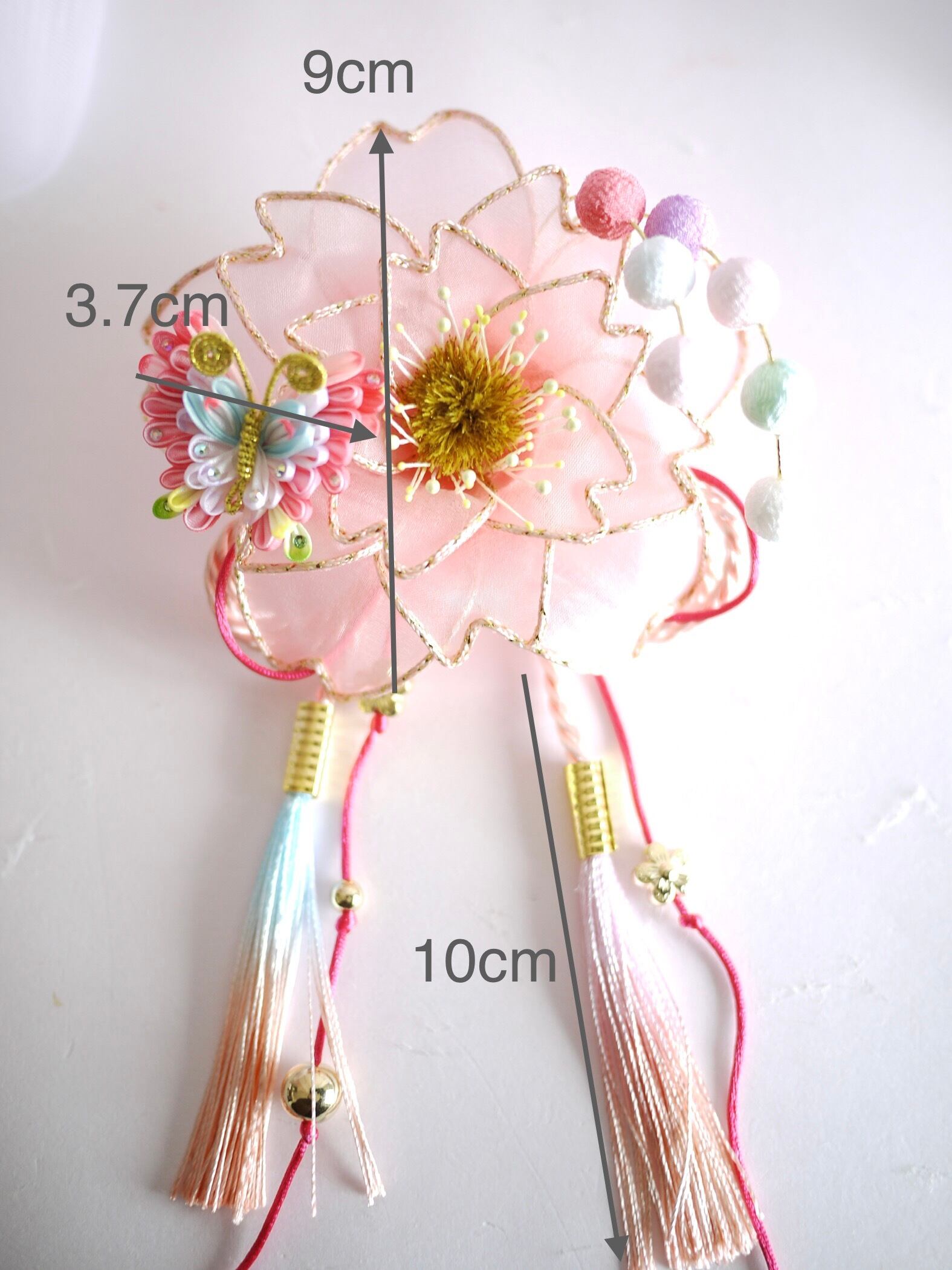 つまみ細工は専用の糊のみで制作しております、水に濡れると糊が溶けて型崩れしたり、正絹地が変形・変色する原因になることがございます。 雨や水濡れ・湿気には十分お気をつけください。 濃色のものは特に色移りする場合がございます