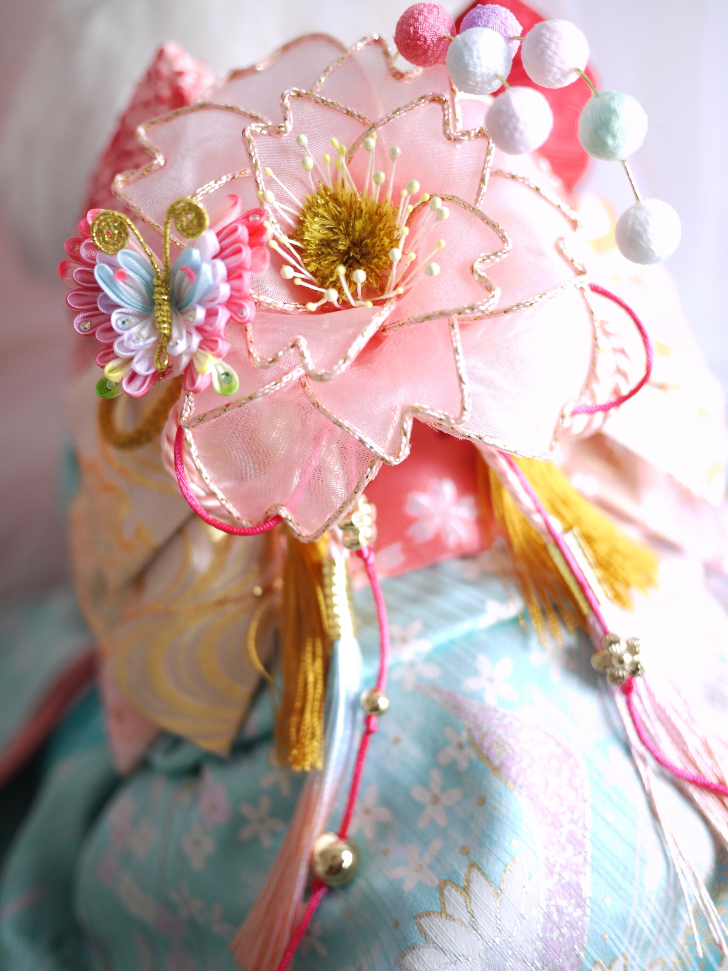 シンプルな蝶結びの帯には帯飾りで高さを出すだけでクラス感も出ますので、単品帯飾りチェンジ未経験の方は是非お試しになってみてください