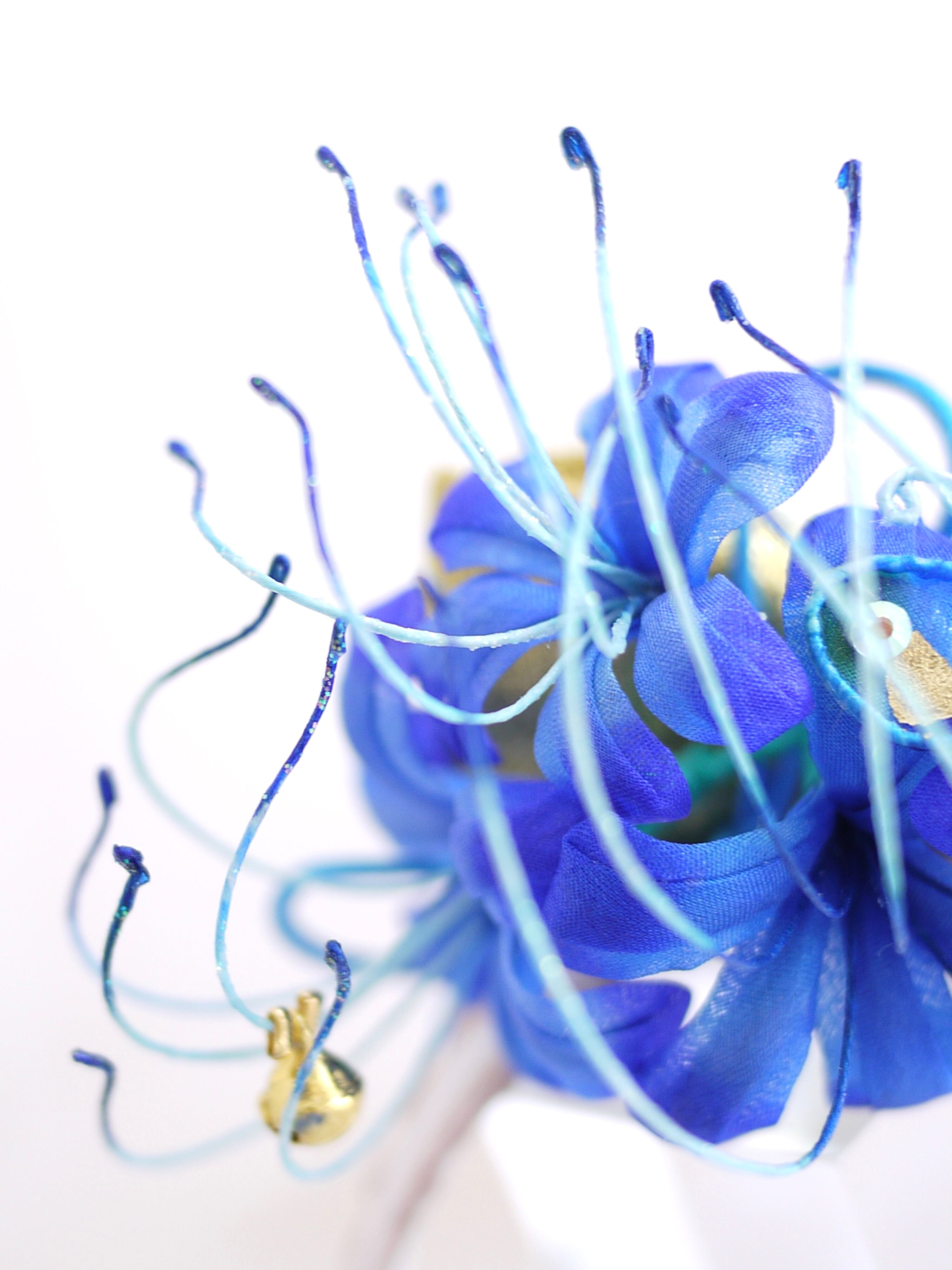 つまみ細工は専用の糊のみで制作しております、水に濡れると糊が溶けて型崩れしたり、正絹地が変形・変色する原因になることがございます。 雨や水濡れ・湿気には十分お気をつけください。 濃色のものは特に色移りする場合がございます