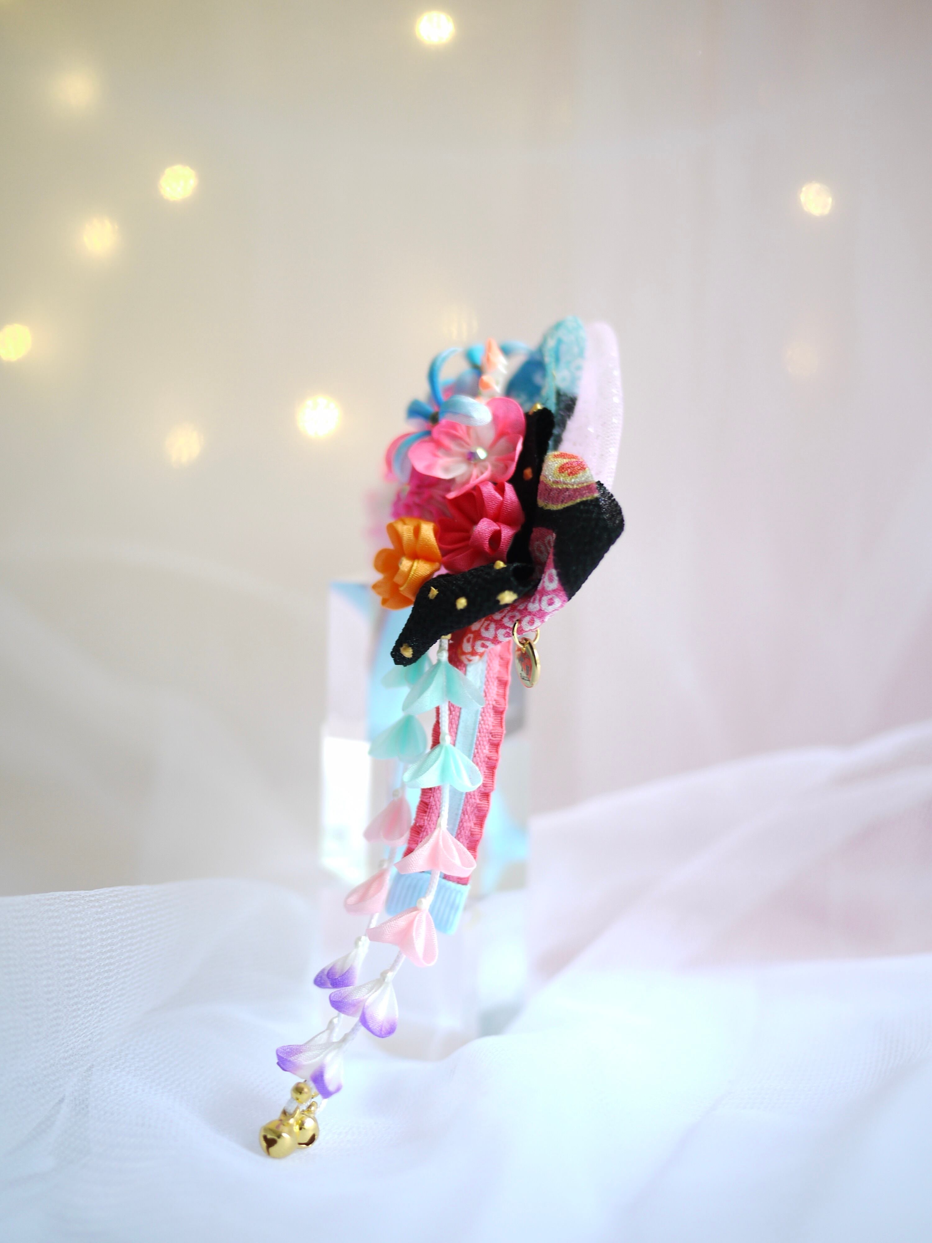 お着物にはよく使われてるカラーを多用しているので個性的に見えるかもですが意外とこのかんざしが似合うお着物持ってる方は多いはず☺︎