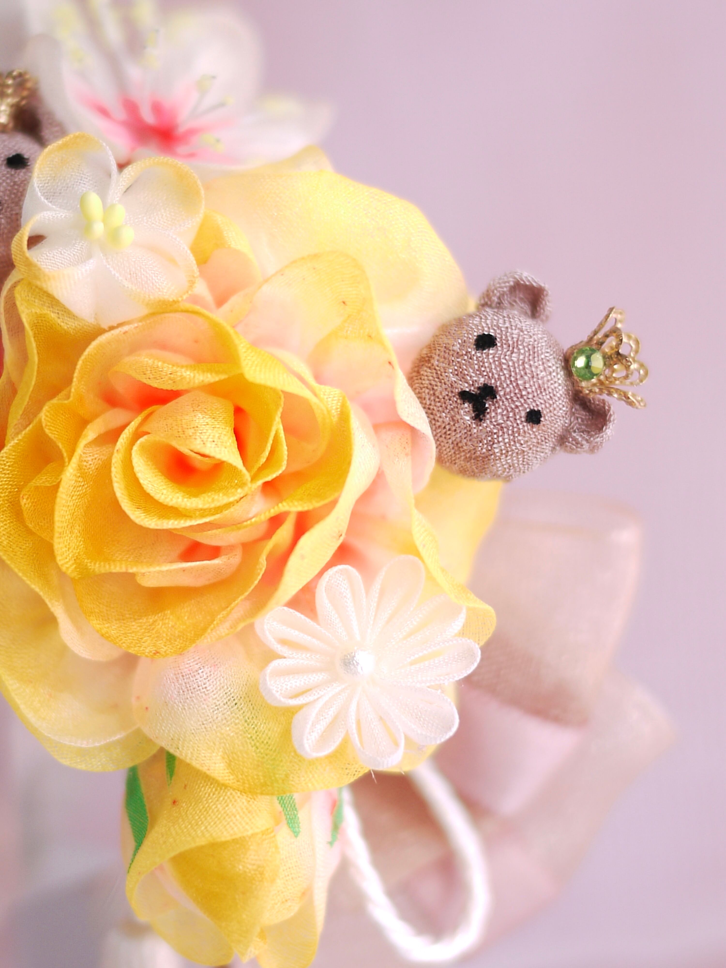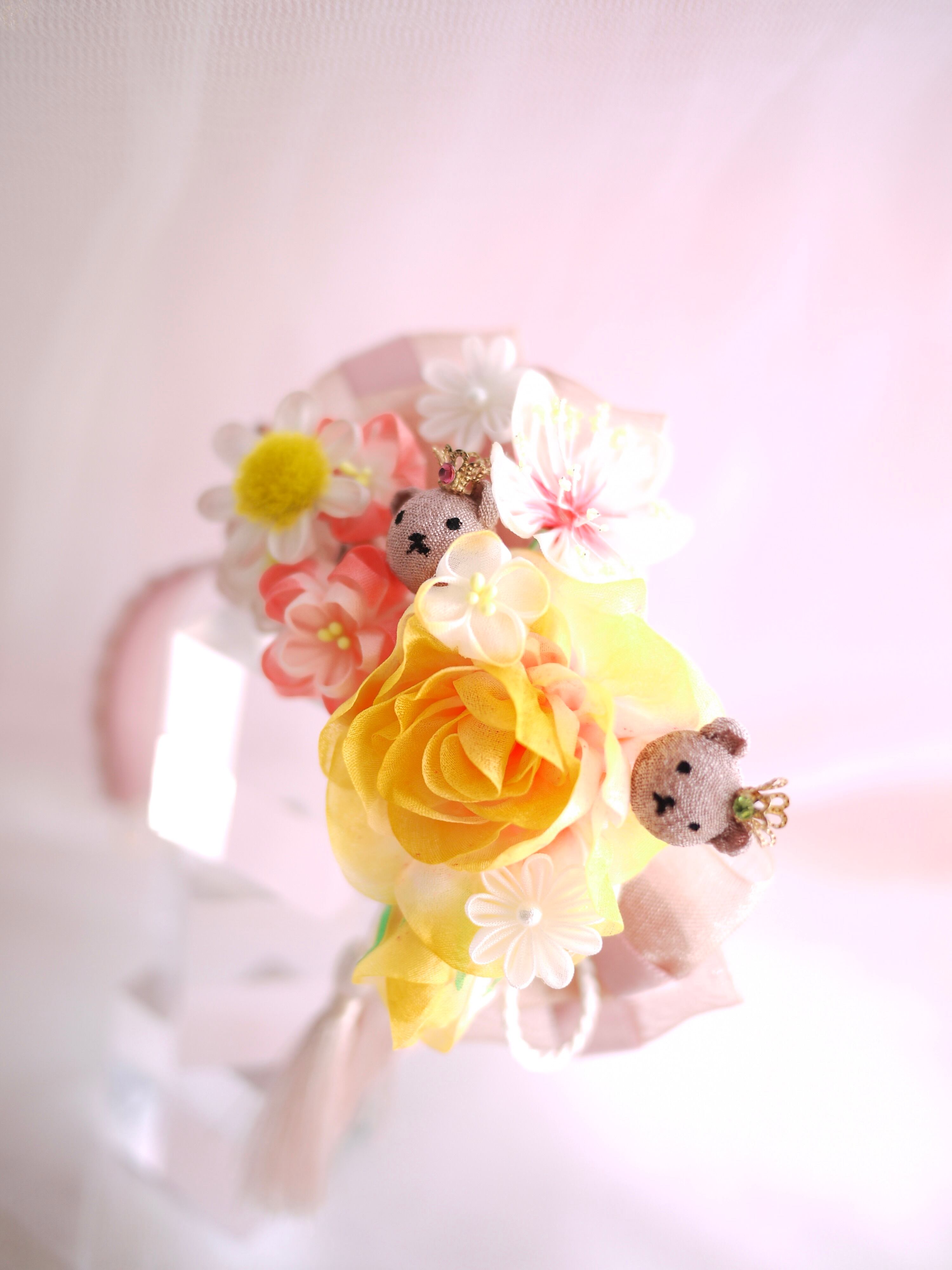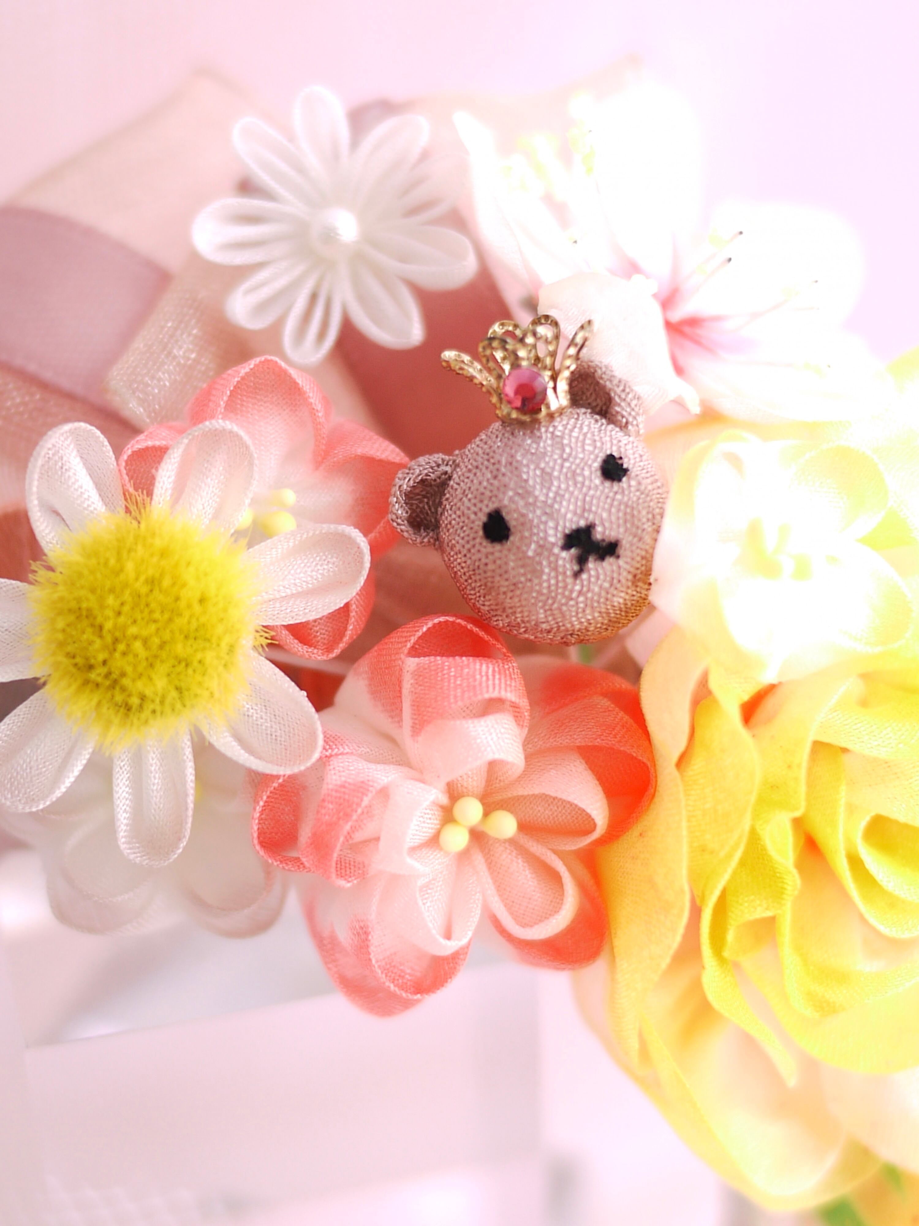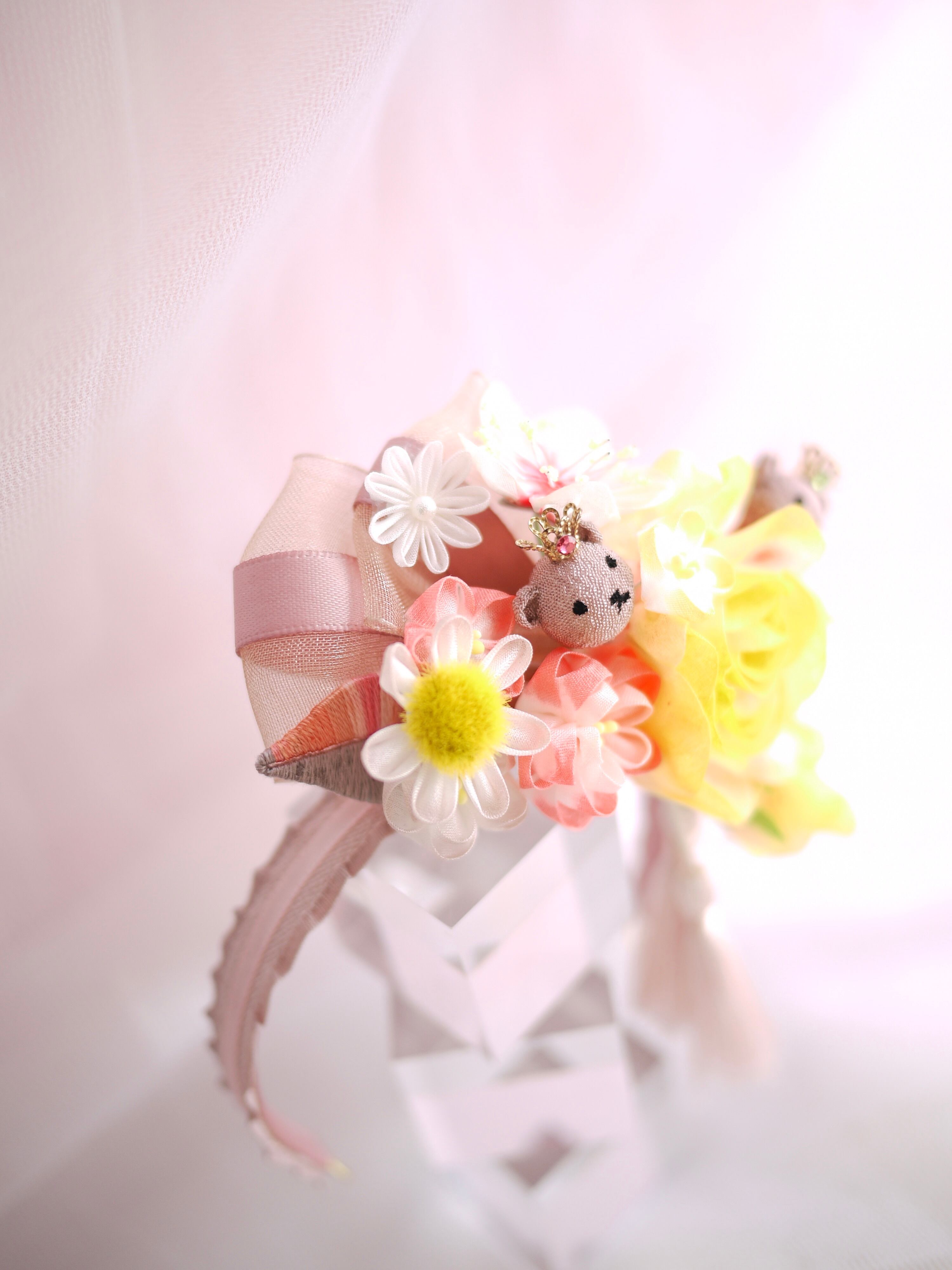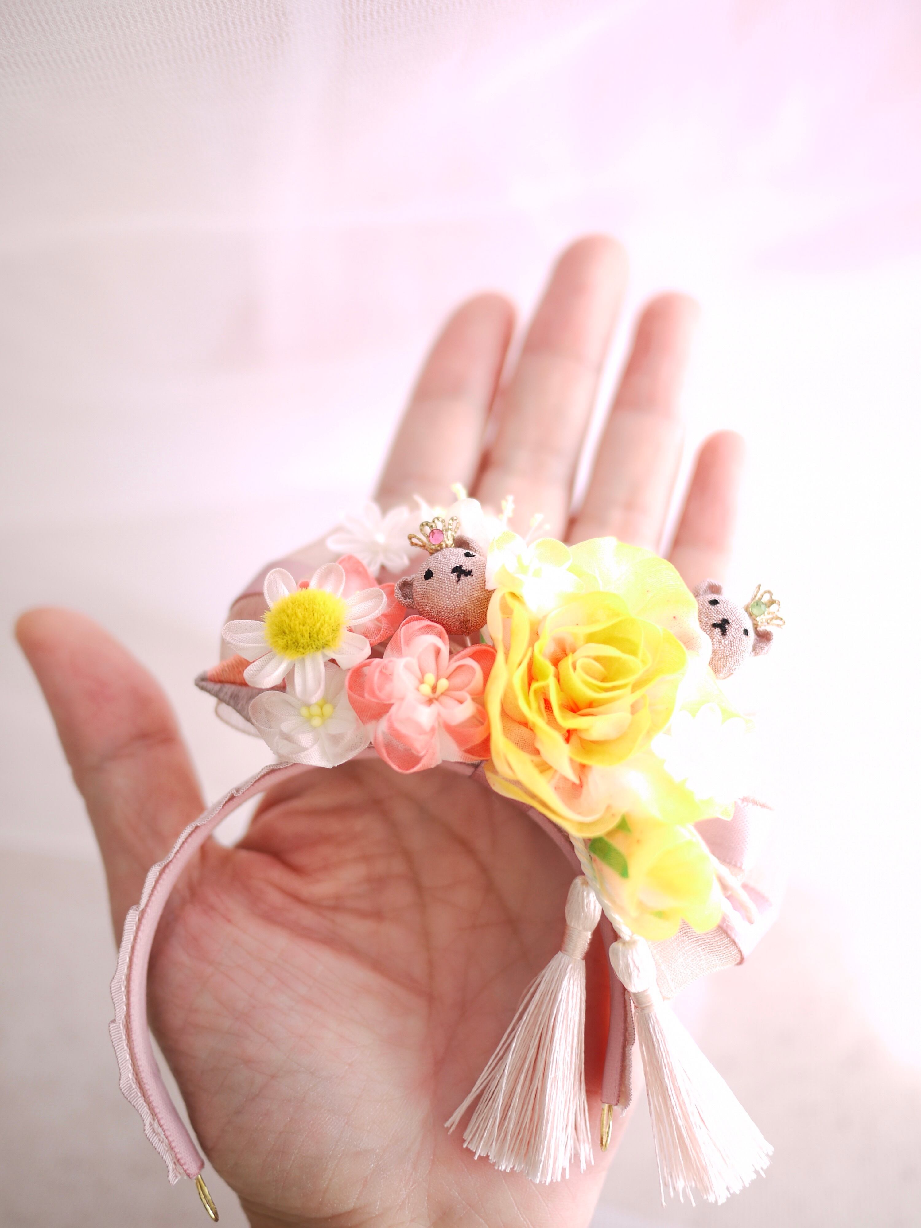 【豆熊】タイニーカチューシャ花簪&帯飾りセット