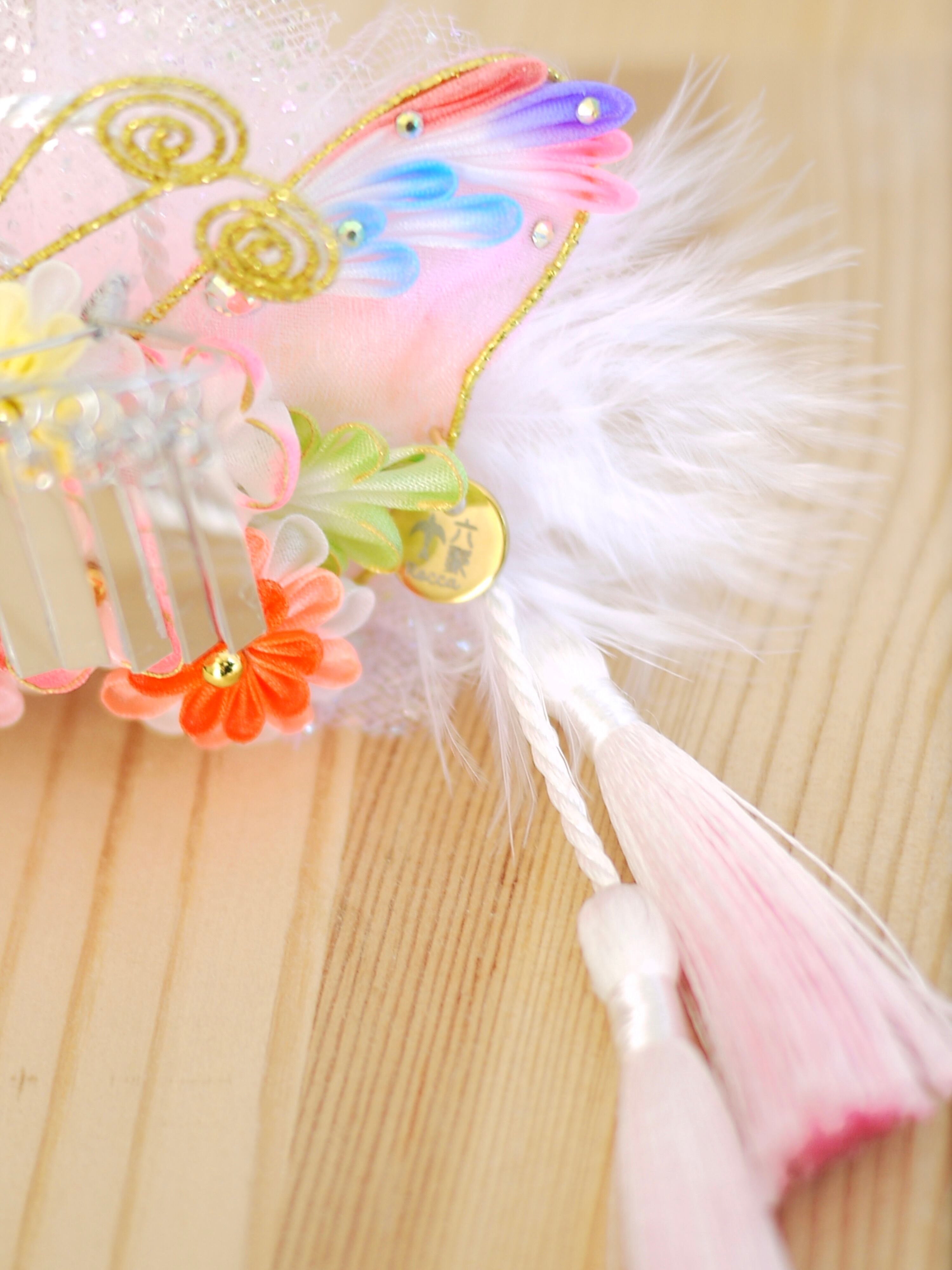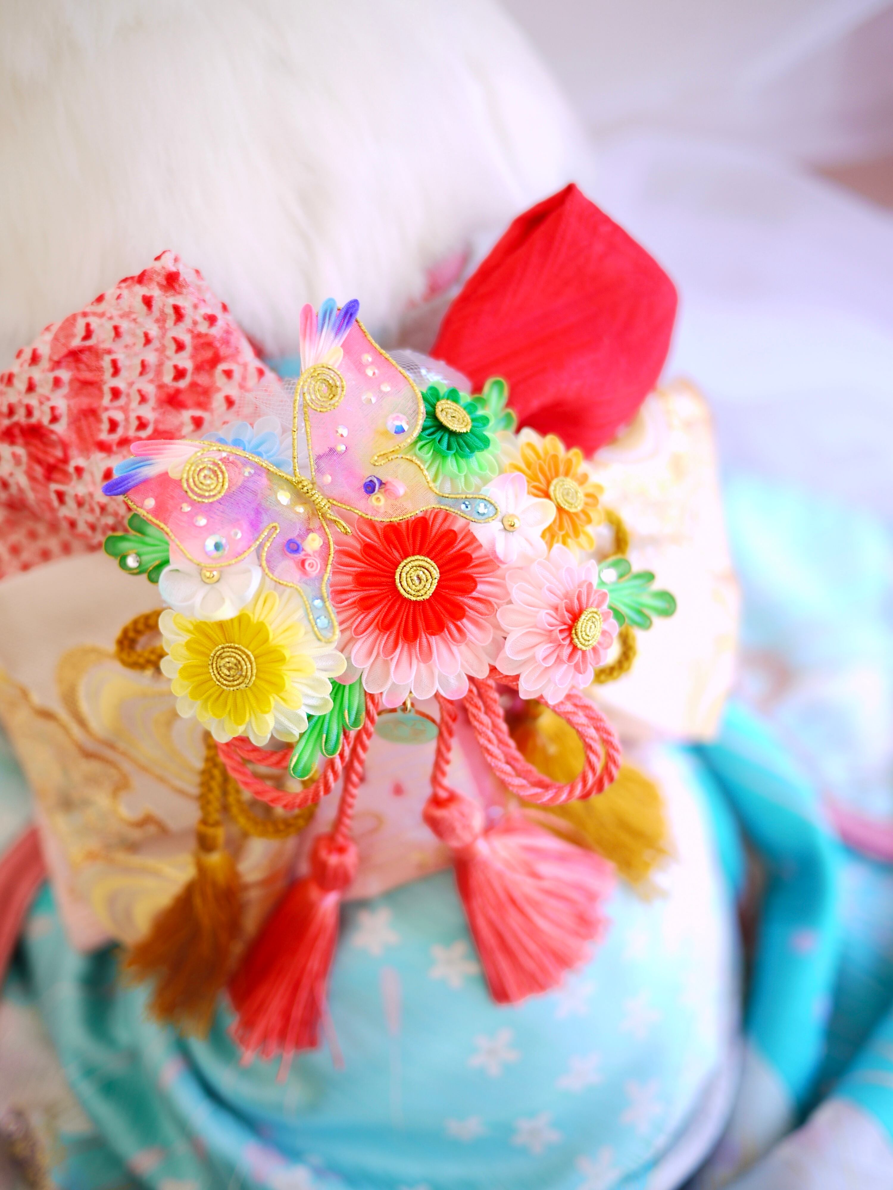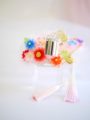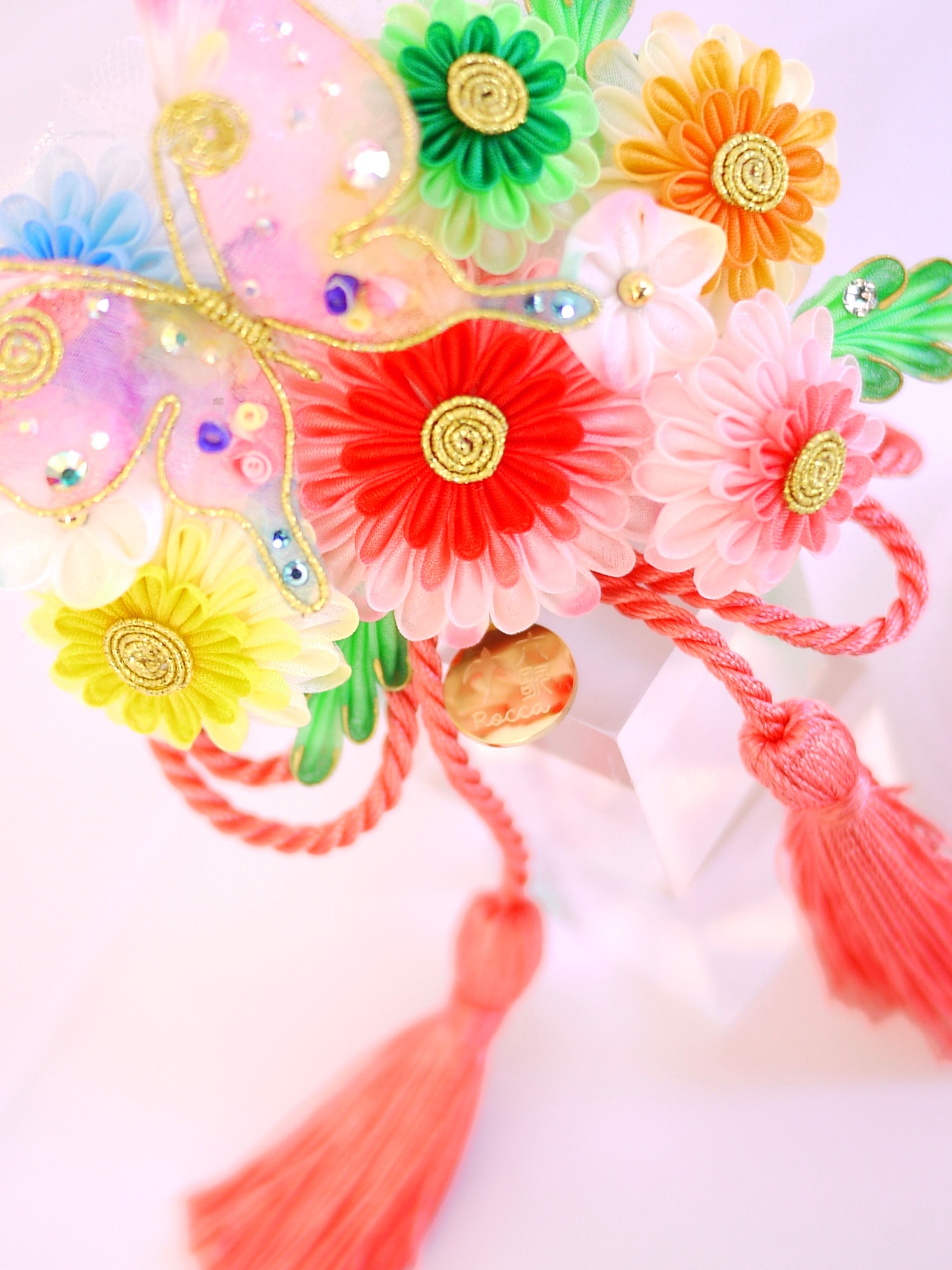 つまみ細工は専用の糊のみで制作しております、水に濡れると糊が溶けて型崩れしたり、正絹地が変形・変色する原因になることがございます。 雨や水濡れ・湿気には十分お気をつけください。 濃色のものは特に色移りする場合がございます