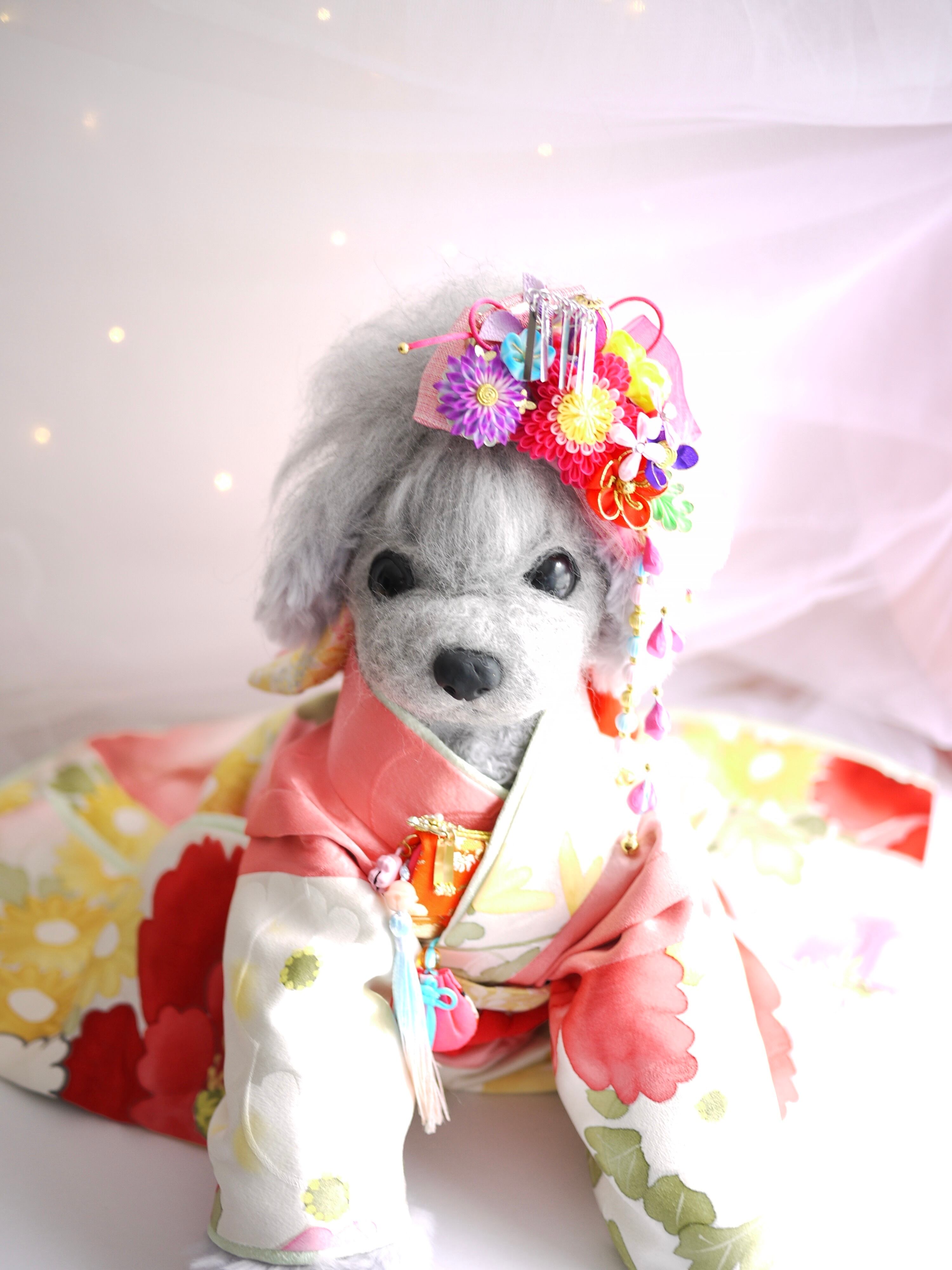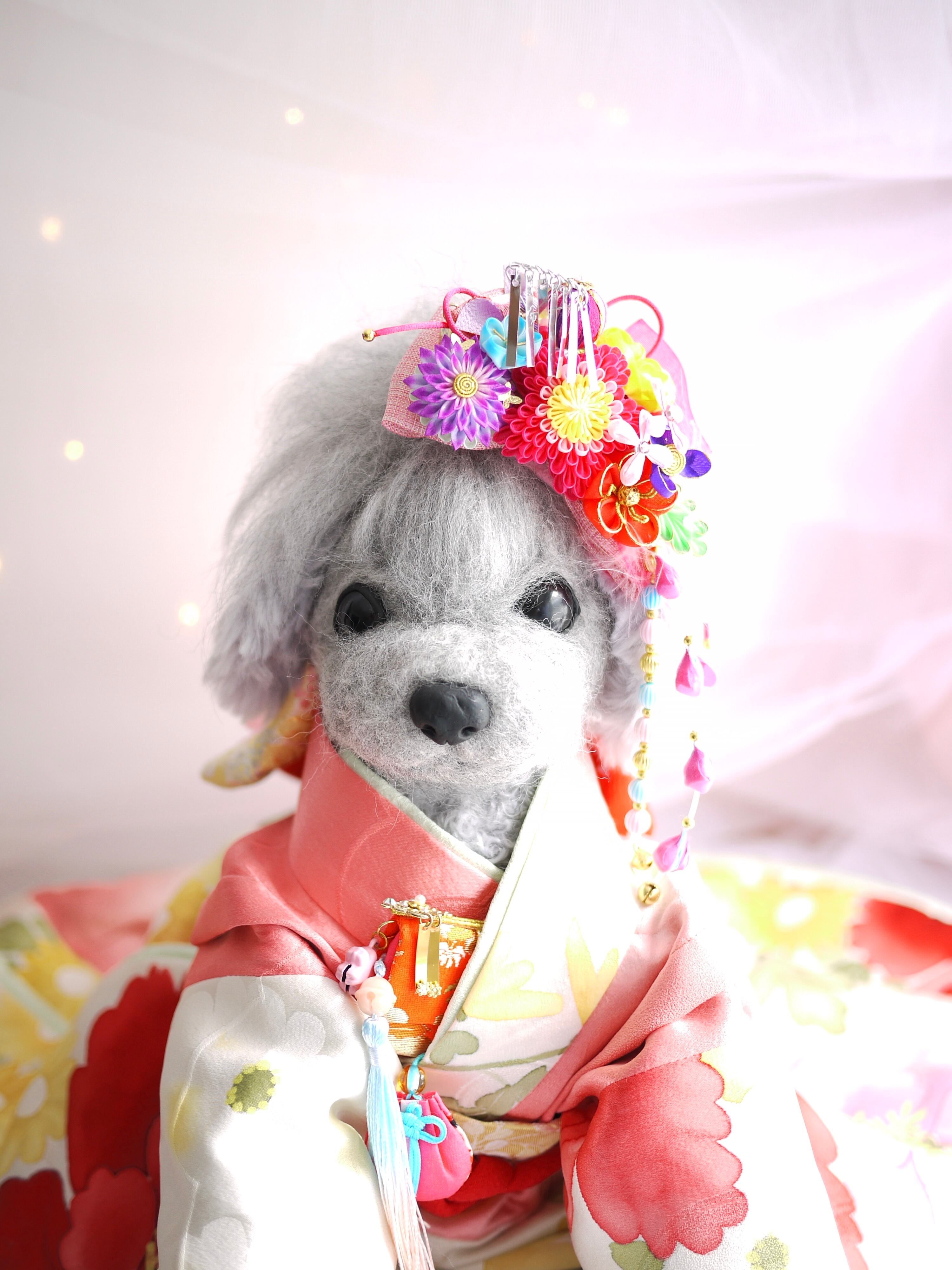 百花繚乱の古典柄振袖を着ておすまししてる姿を思い浮かべて拵えました